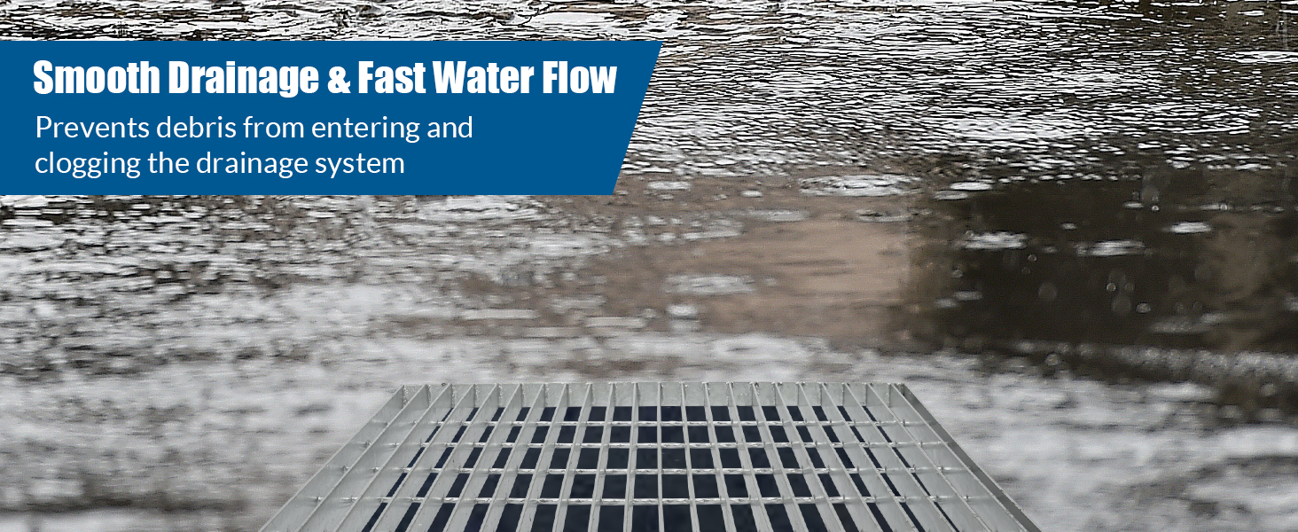 تركيب سهل: ببساطة ضع شبكات تصريف الممر فوق الصرف المبني، إذا لزم الأمر، يمكنك توصيل شبكات الصرف الصحي المتعددة معًا للحصول على طول إضافي. يرجى قياس الصرف الخاص بك قبل الشراء