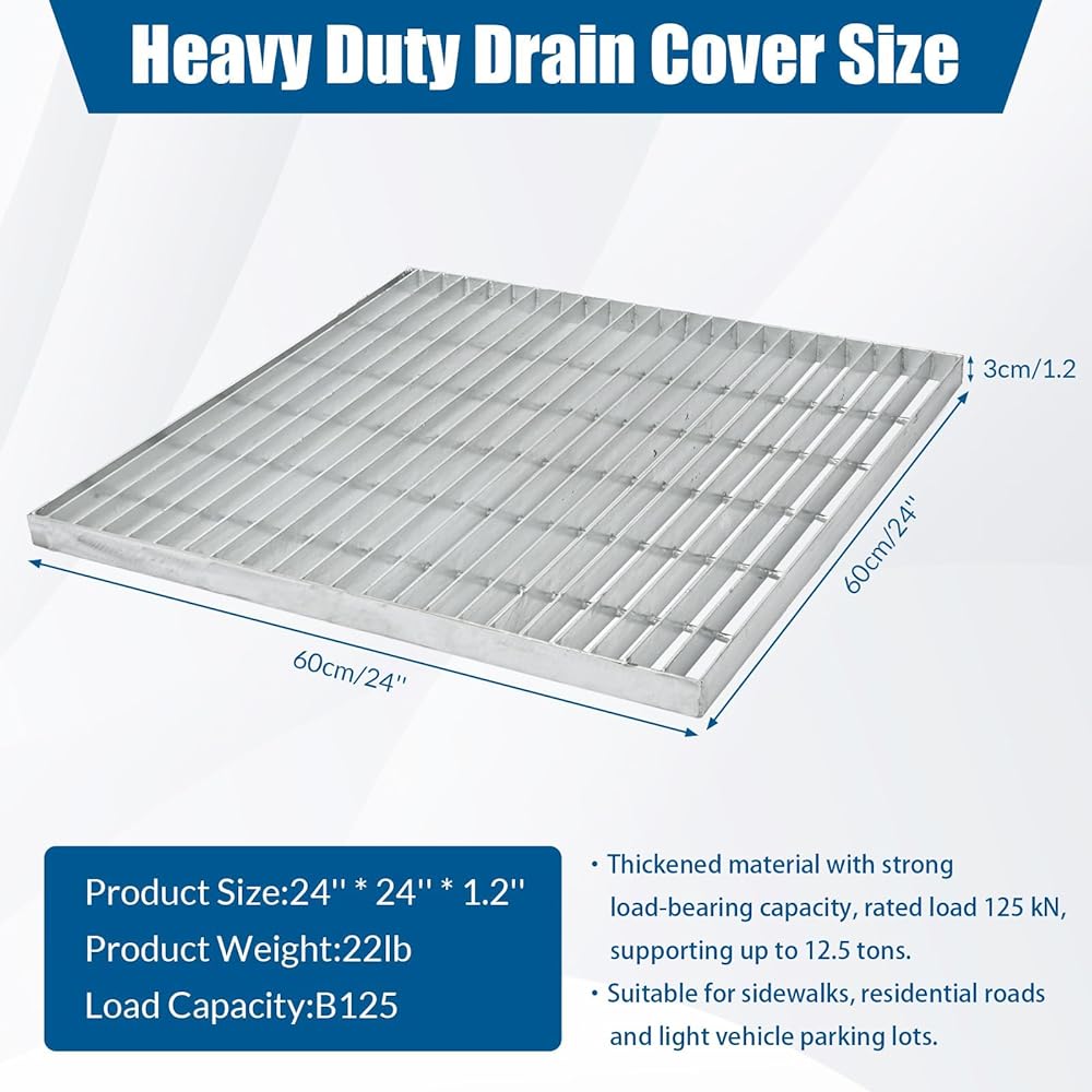 شبكة تصريف من الصلب المجلفن مقاس 24 بوصة × 24 بوصة غطاء تصريف للخدمة الشاقة في الهواء الطلق B125 فئة شبكة الصرف الصحي المعدنية شبكات فولاذية لباحات الممرات والأرضيات الخرسانية