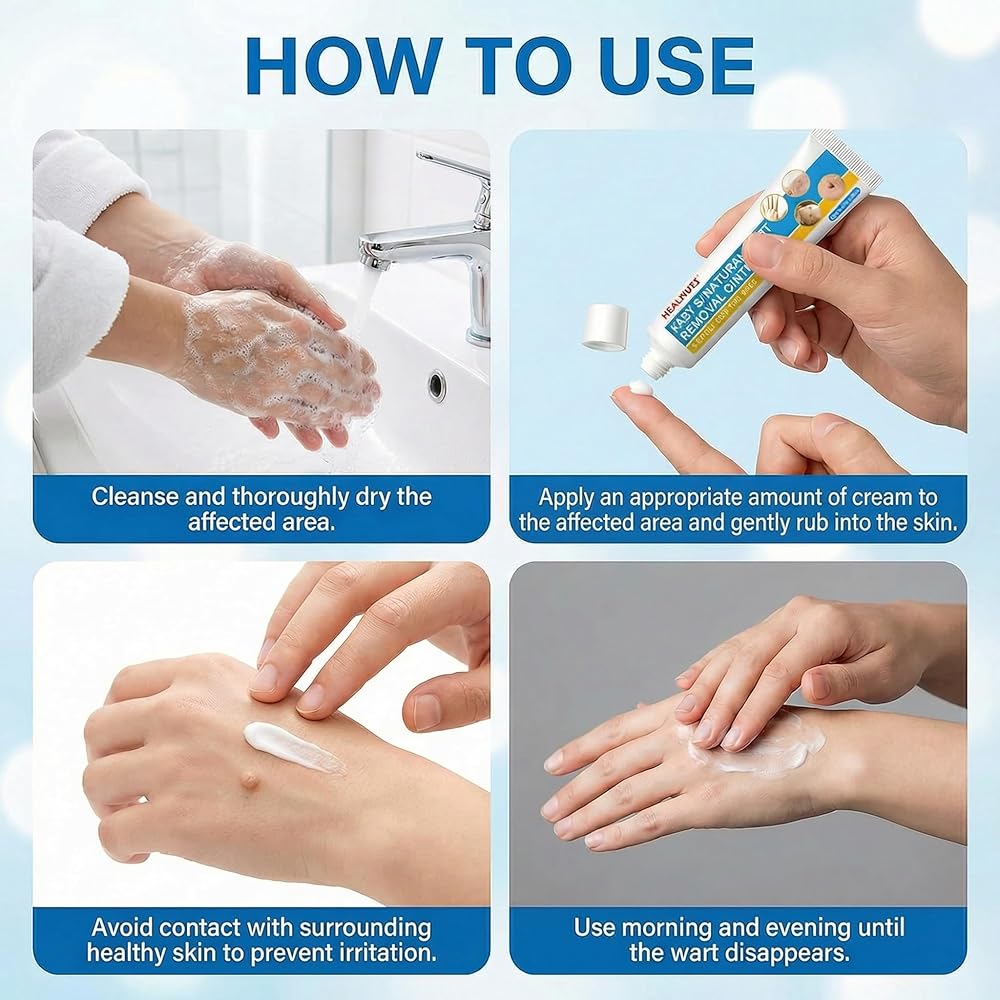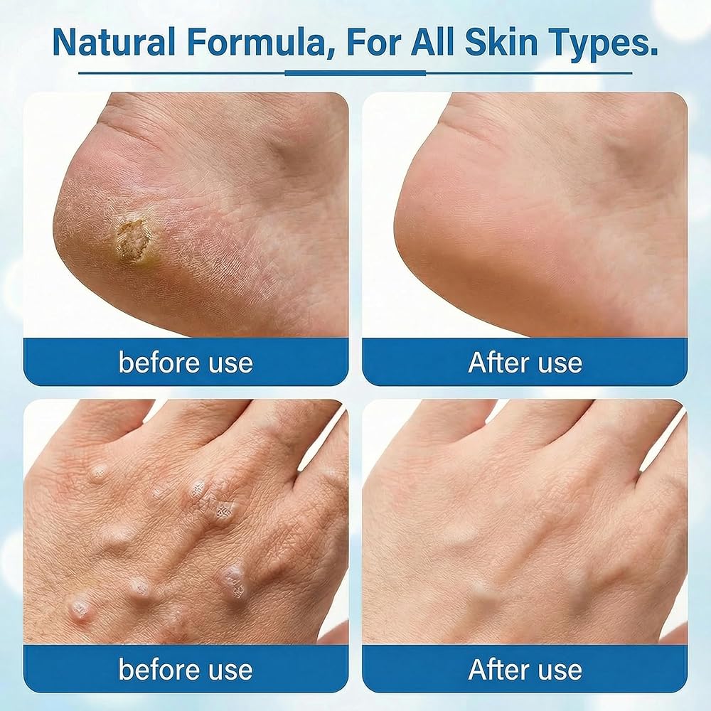 إزالة الثآليل المستهدفة: تم تركيبه خصيصًا لمعالجة الثآليل الأخمصية التي يصعب إزالتها على القدمين والثآليل الشائعة على اليدين. يتغلغل الكريم سريع المفعول بعمق للوصول إلى جذور الثؤلول، مما يدعم عملية تجديد البشرة الطبيعية.
