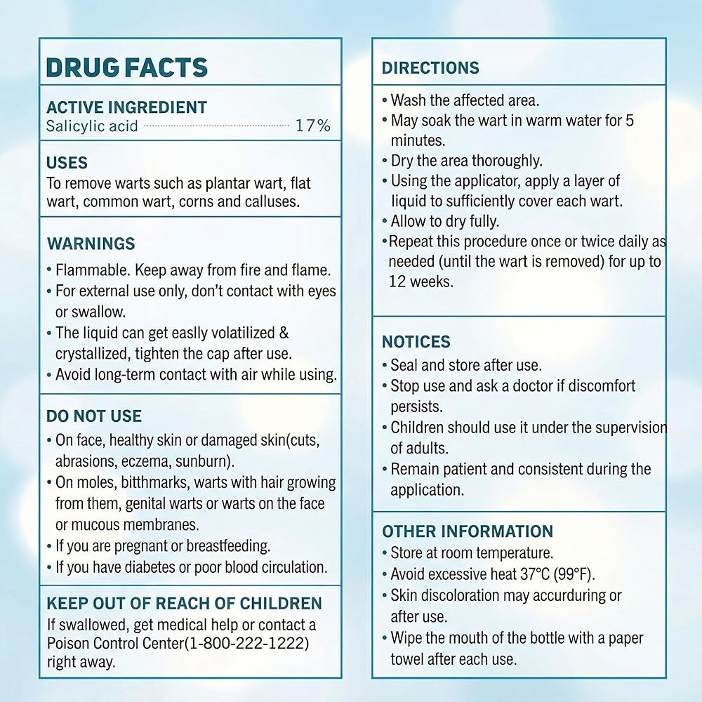 تركيبة القوة القصوى: تتميز بتركيز حمض الساليسيليك بنسبة 17% بدرجة احترافية، وهي أقصى قوة متاحة بدون وصفة طبية. يعمل هذا العلاج الفعال للقرنية على تنعيم وتقشير طبقات الثآليل الشائعة والأخمصية للحصول على نتائج ملحوظة.