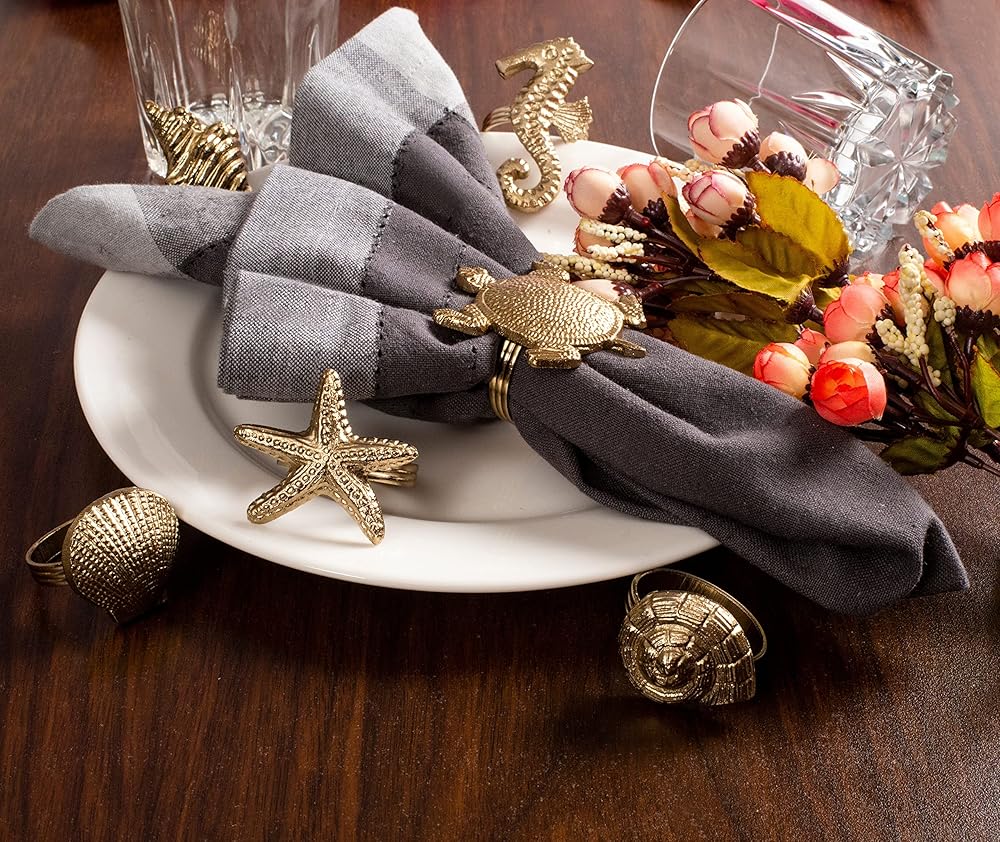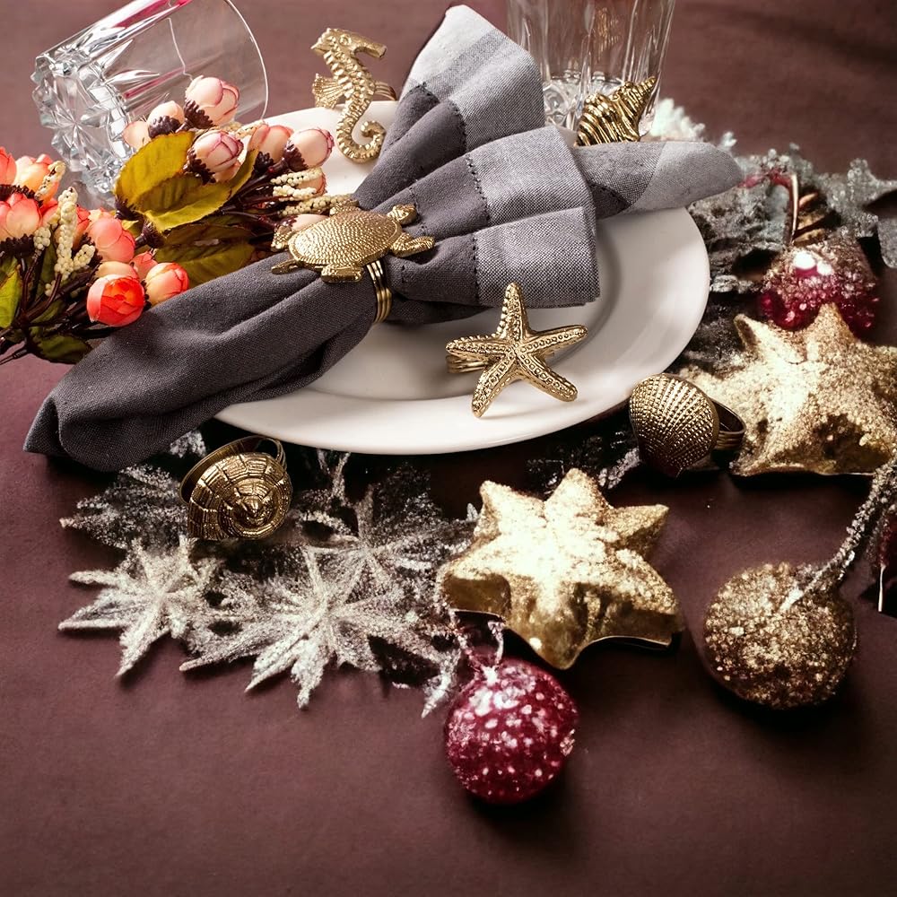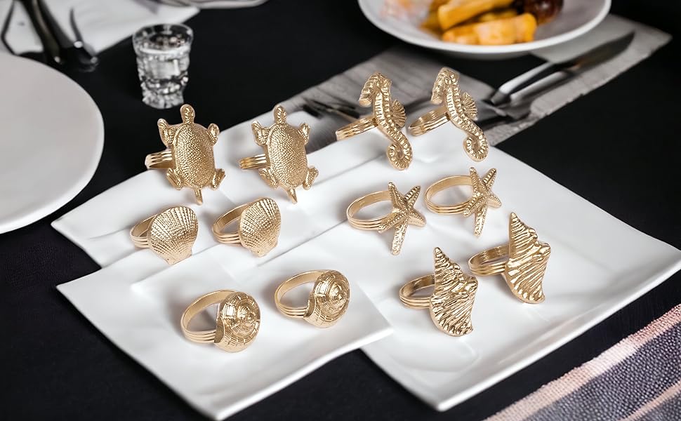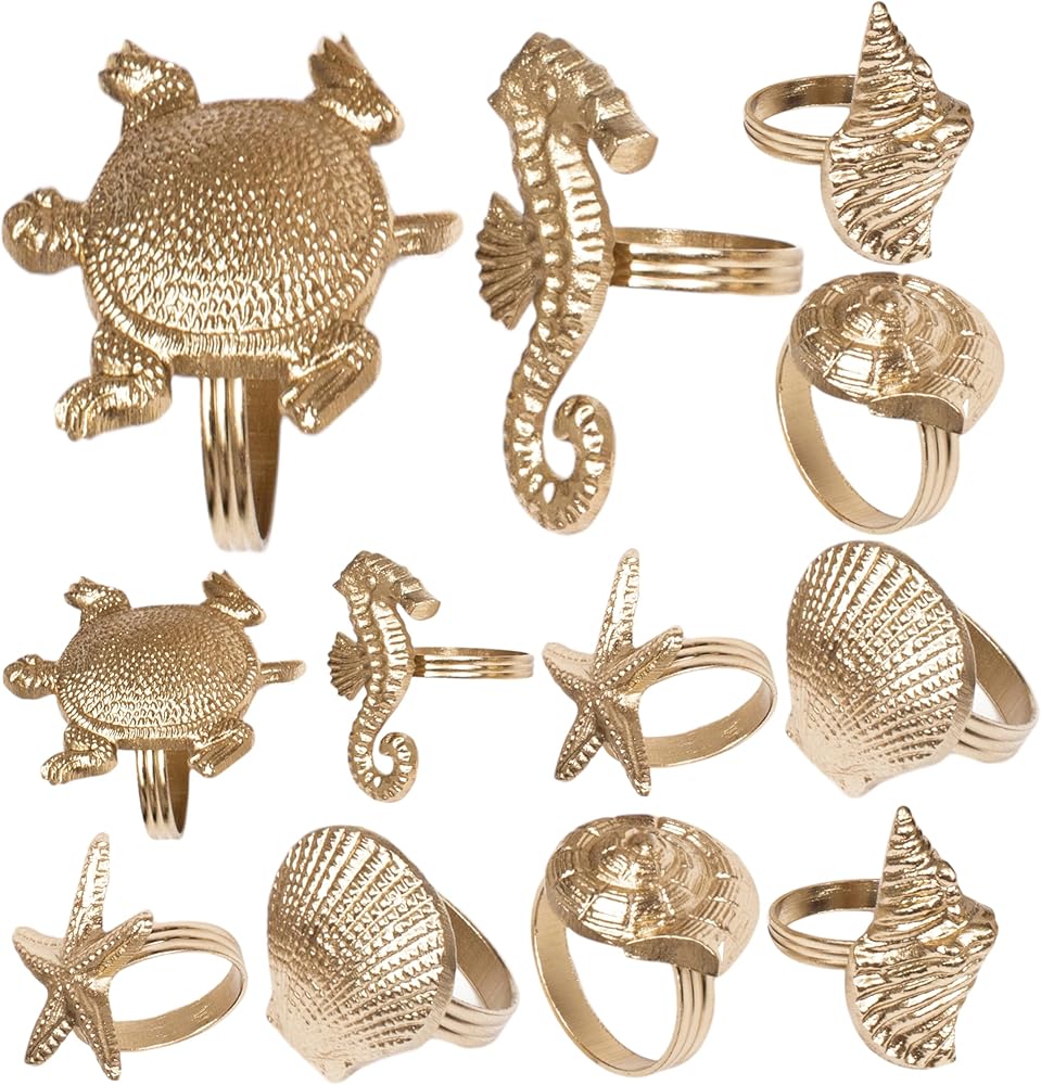 12 قطعة من حلقات المناديل البحرية - حلقات منديل مزخرفة، حلقة منديل معدنية زينة معدنية لعيد الميلاد، وعيد الشكر، وتناول الطعام، وديكور المنزل، والهدايا، والزفاف، والحفلات (ذهبي عتيق)
