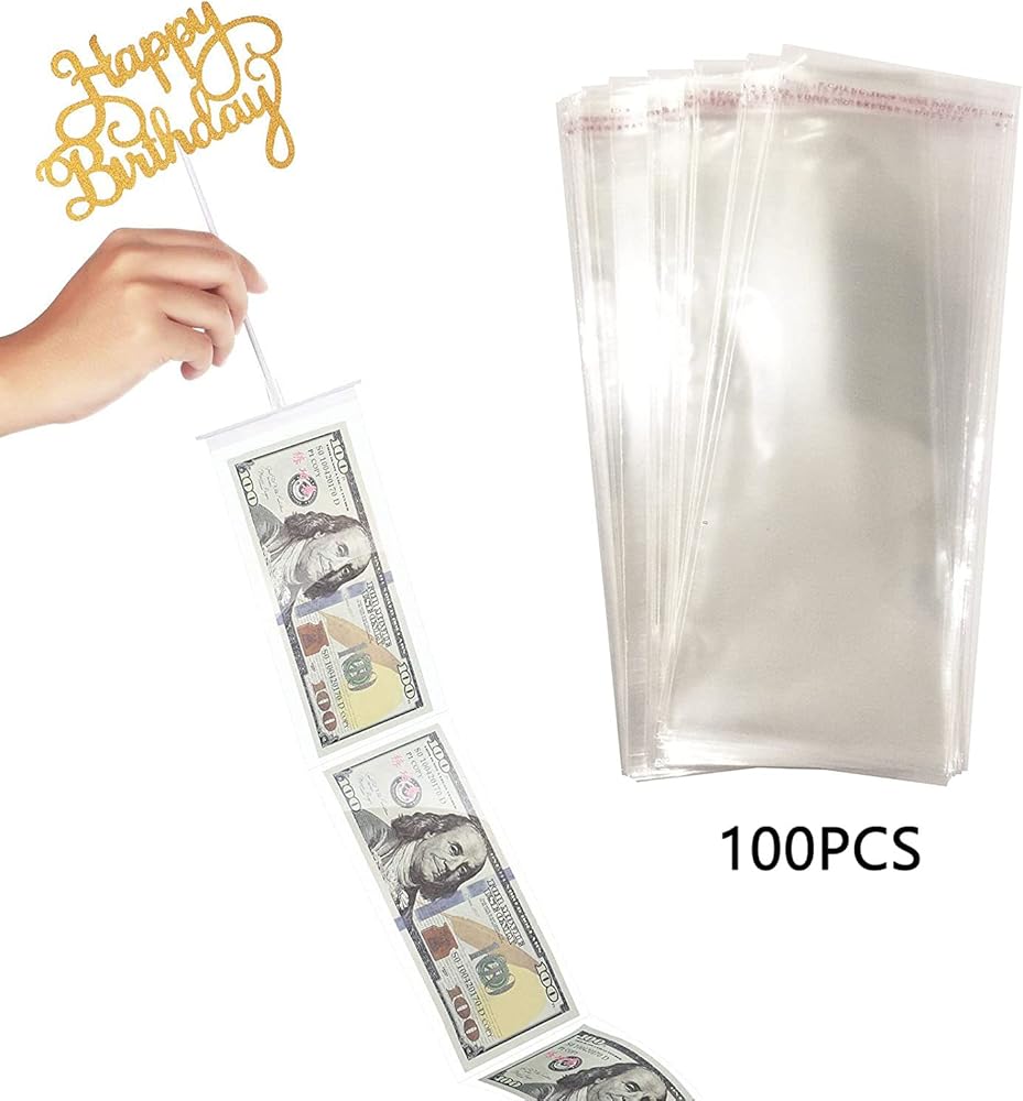 100 قطعة من حصالة الكيك أكياس شفافة آمنة للطعام لاصقة ذاتية الغلق وقابلة للإغلاق أكياس بلاستيكية شفافة (الصندوق غير متضمن)