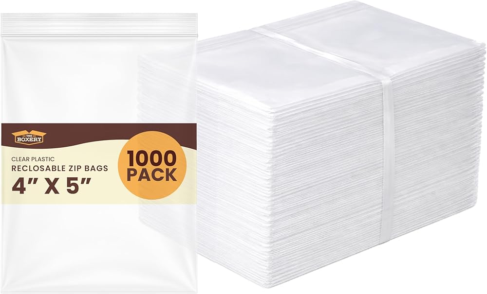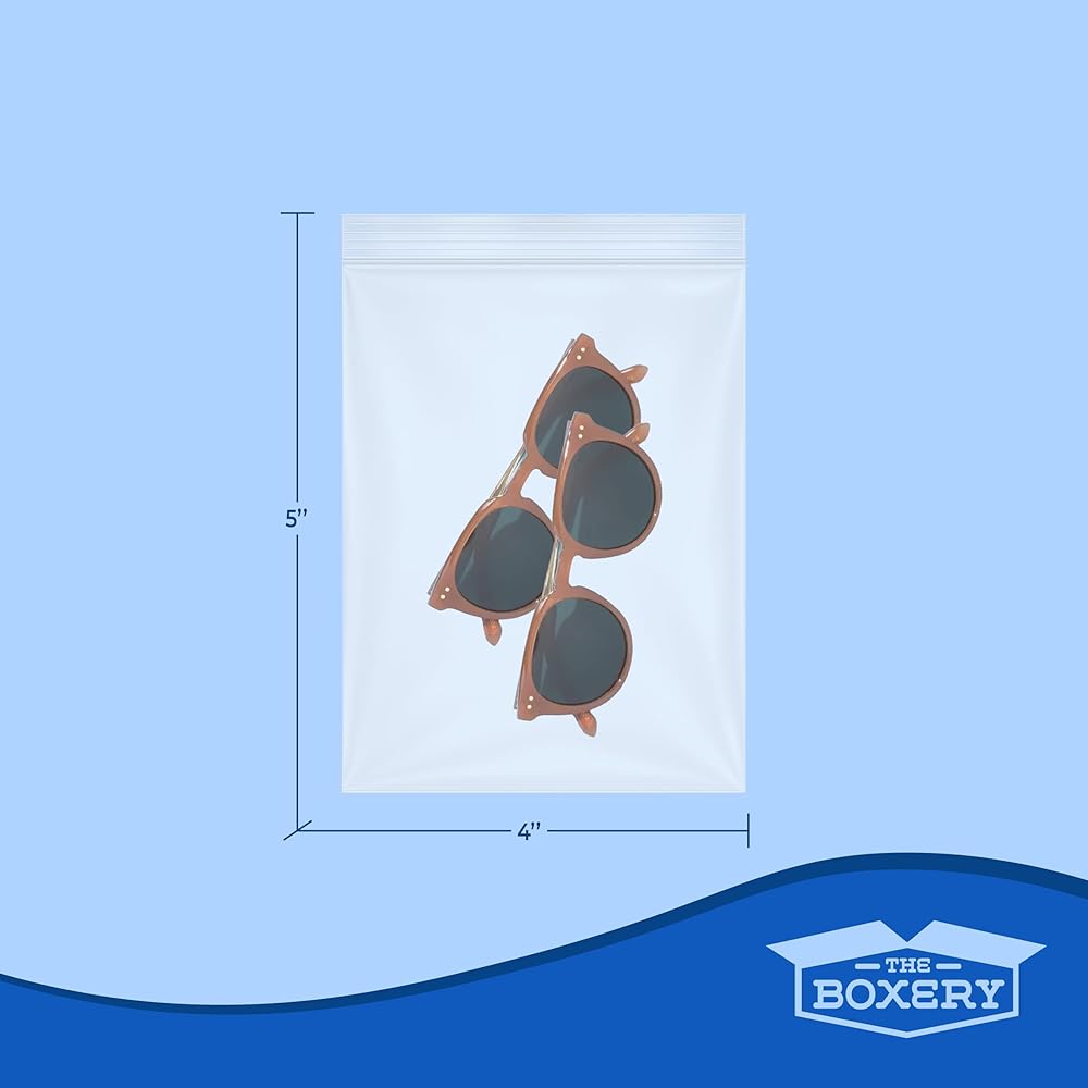 أكياس The Boxery مقاس 4 × 5 بوصة بسمك 2 مل من البلاستيك الشفاف القابل لإعادة الإغلاق (1000 عبوة) أكياس بولي قوية ومتينة مع سحاب قابل للإغلاق، والتخزين، والمجوهرات، والخرز، والحرف اليدوية، وحقائب التعبئة والشحن