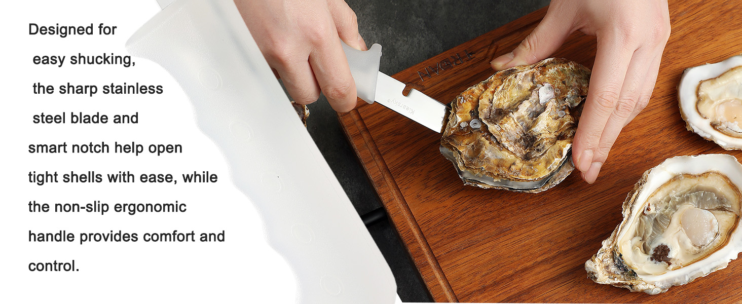 • 【آمن وسهل الاستخدام - تصميم سهل الفتح】 يستخدم سكين المحار الاحترافي هذا شفرة مشطوفة واحدة تعمل على تحسين التحكم والسلامة. ينزلق الطرف الحاد المدبب بسلاسة داخل مفصل المحار، مما يجعل من السهل فتح المحار بأقل جهد. من السهل حقا فتح ورائعة للمبتدئين.