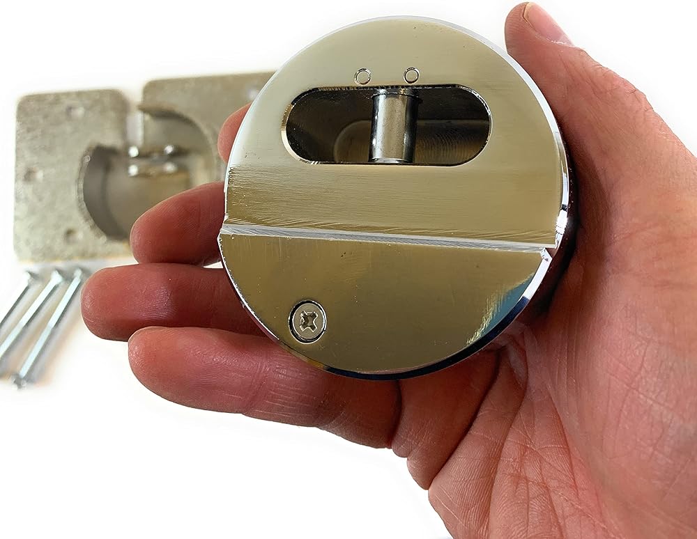 Introducing our durable and secure Puck Lock with Hasp and Mounting Hardware, the perfect solution to protect your valuable items. This heavy-duty lock is designed to resist cutting, sawing, and prying, ensuring your items stay safe and secure. Our Puck Lock is made with high-quality materials that are built to last, and comes with a sturdy hasp and mounting hardware that makes installation a breeze. Whether you need to secure your Storage Shed, Garage, Van, Vehicle or Trailer, this lock is the perfect choice for keeping your items safe from theft. Round lock is easy to use and resistant to attacks. And with its weather-resistant design, you can use it in any climate without worrying about rust or corrosion. So don't wait any longer to protect your valuable items. Order our Puck Lock with Hasp and Mounting Hardware today and get peace of mind knowing your belongings are more secure!