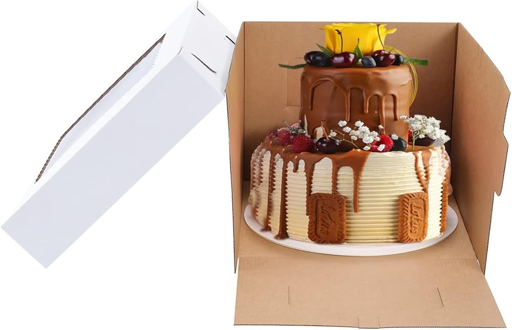 مواد عالية الجودة: صناديق من الورق المقوى المموج عالي التحمل. صناديق الكعك لدينا سميكة وقوية. المواد الصديقة للبيئة قابلة لإعادة التدوير والتحلل. يمكنك الوثوق في الاحتفاظ بكعكتك وأشياءك الجيدة وضمان حمايتها أثناء العرض وأثناء النقل.