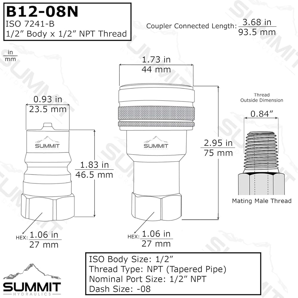1/2 ″ NPT ISO 7241-B قطع الاتصال السريع قارنة التوصيل الهيدروليكية الأنثوية