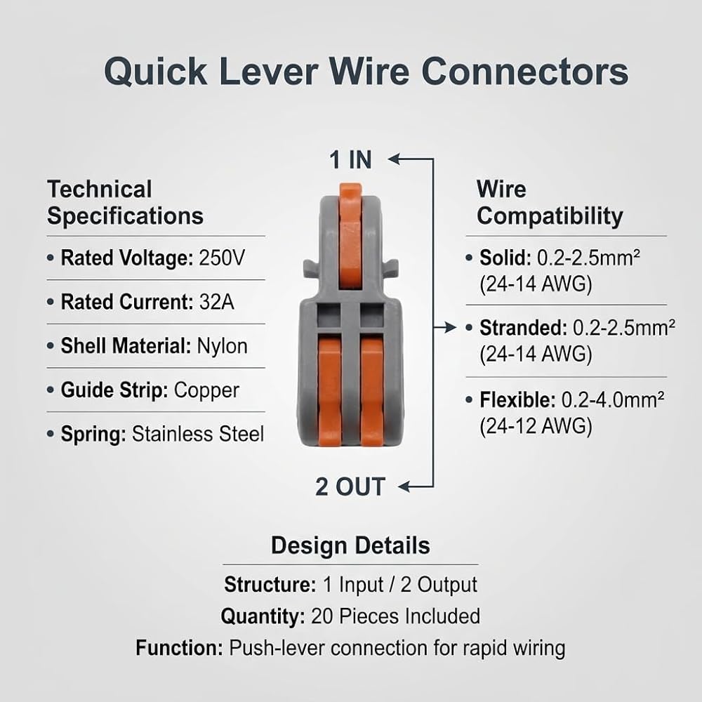 The Uelkr Lever Wire Connectors 20-Pack delivers a safe, durable, and highly versatile solution for fast and reliable electrical connections.