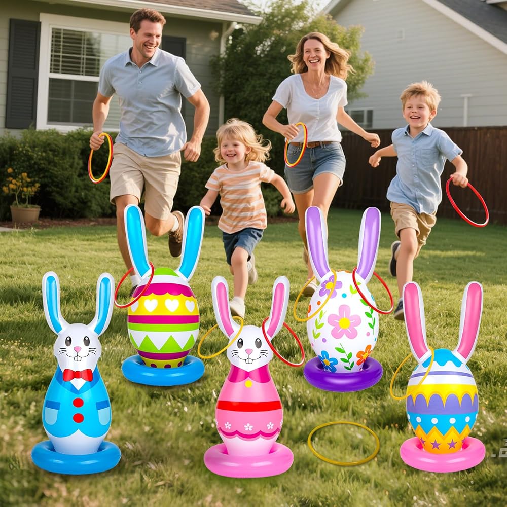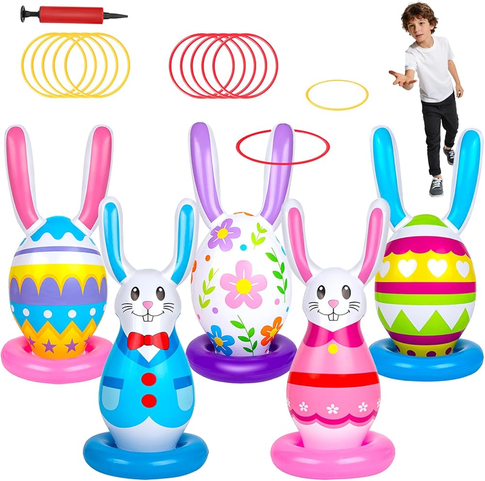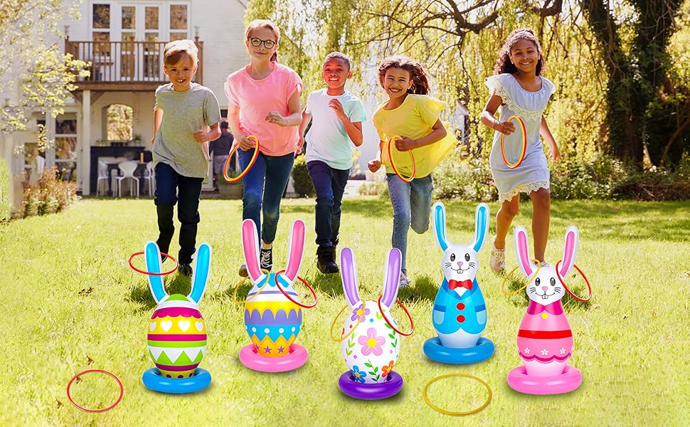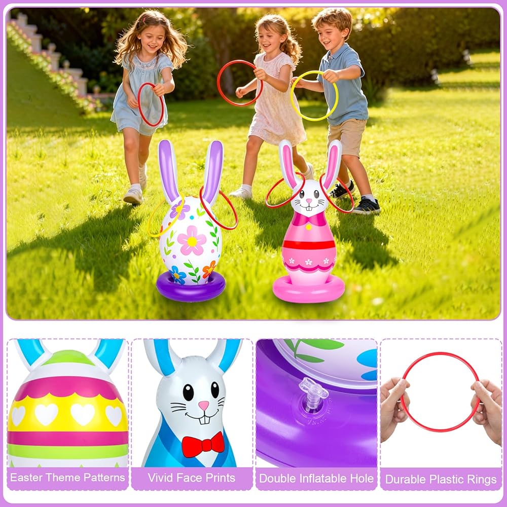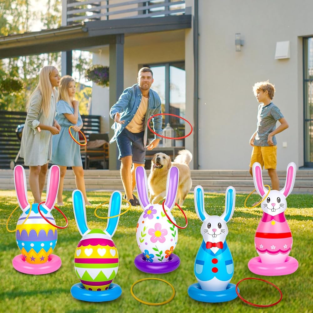 5 عبوات من ألعاب عيد الفصح القابلة للنفخ للأطفال، ألعاب الرمي الدائري على شكل بيضة أرنب قابلة للنفخ، حفلة عيد الفصح في الأماكن المغلقة والخارجية للعائلة