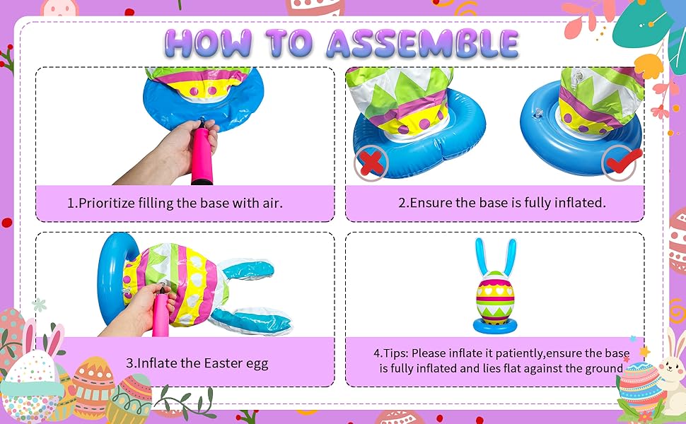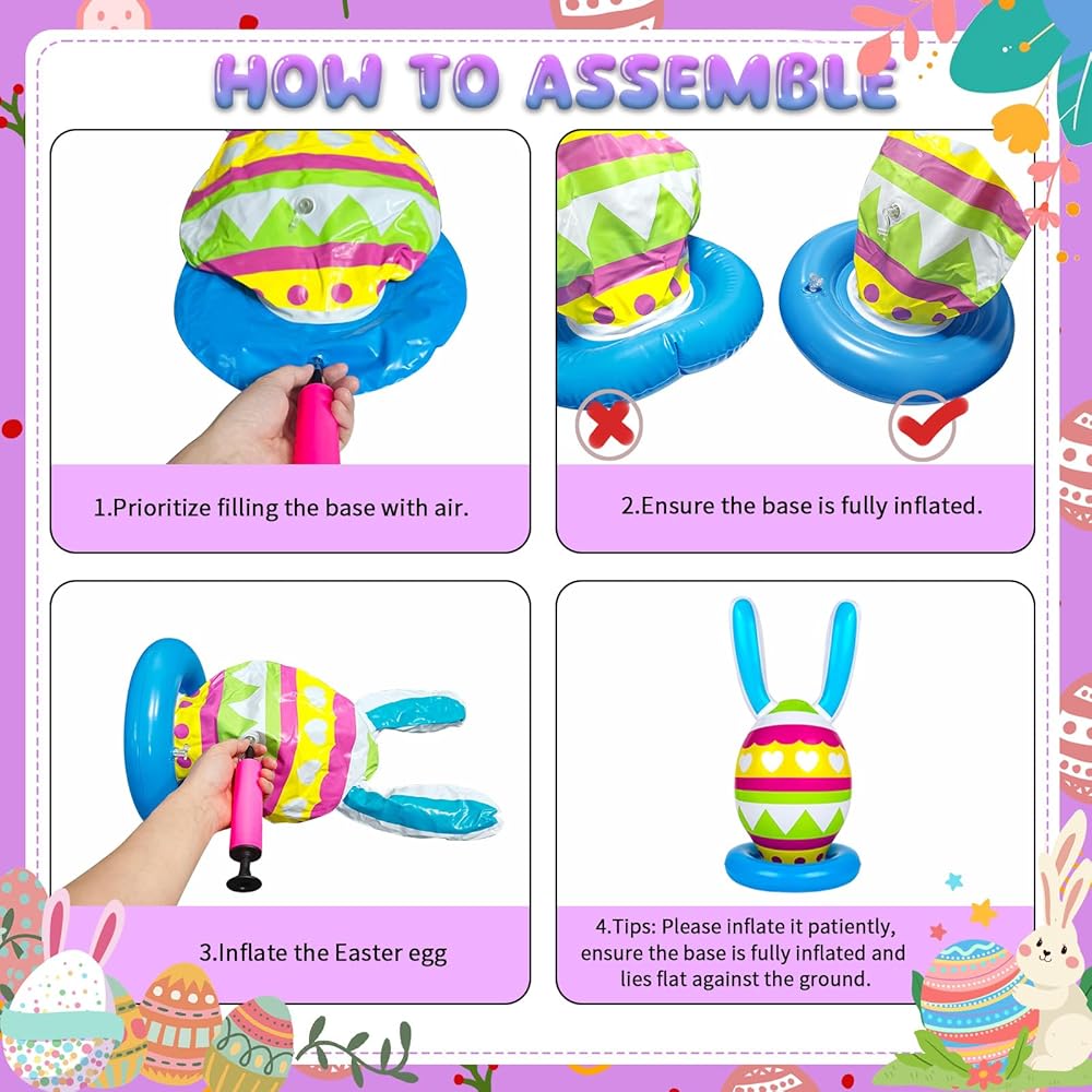 【لعبة ممتعة لحفلة عيد الفصح 】يتم وضع بيض عيد الفصح والأرنب القابل للنفخ على أي قاعدة مسطحة. نظرًا لأن هذه اللعبة ليس لها حدود للمساحة، يمكنك لعبها أينما ومتى تريد.