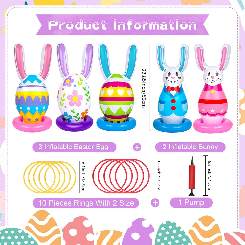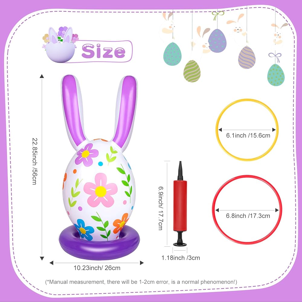 【اختيار رائع للحفلات】يمكن للعبة الرمي الحلقية القابلة للنفخ أن تضيف متعة إلى حفلة عيد الفصح الخاصة بك، وهي مناسبة لمناسبات صيد بيض عيد الفصح، والأيام المدرسية، والألعاب الداخلية والخارجية. إنها ألعاب حفلات عيد الفصح المثالية للعائلة والأصدقاء.