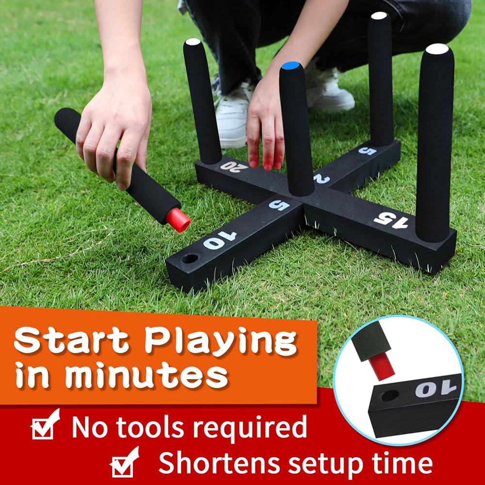 • ☀ لعبة الرمي الدائري الكلاسيكية تصميم متعدد اللاعبين: لعبة القذف الدائري GOOSO تتضمن 5 أقطاب، 4 حلقات إسفنجية ناعمة برتقالية، 4 حلقات إسفنجية ناعمة صفراء، 4 حلقات إسفنجية ناعمة زرقاء، 4 حلقات إسفنجية ناعمة حمراء، وقاعدتين من إسفنج EVA الناعم مع علامات تسجيل لسهولة اللعب في المنافسة في الهواء الطلق.