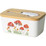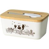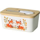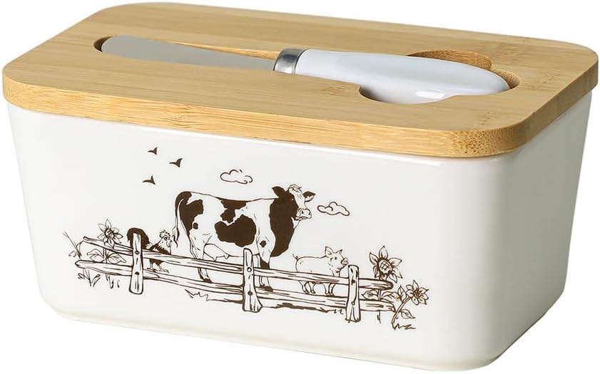 WAIT FLY Flower Ceramic Butter Dish with Bamboo Lid and Knife, 2 Sticks Butter Dish Butter Container Keeper for Kitchen Countertop, Home Decorative-Sunflower