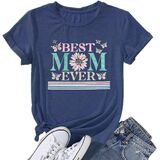 ميزات لامعة: تي شيرت كاجوال للعطلات أفضل قطة وكلب وأم على الإطلاق، تي شيرت صيفي لطيف مطبوع عليه حروف ماما، تي شيرت للعطلات العائلية، تي شيرت مضحك إيجابي ملهم، تي شيرت نسائي برسومات ساخرة، قميص صيفي مضحك لطيف برسومات عباد الشمس ديزي للسفر قصير الأكمام. رقبة دائرية فضفاضة، أزرق داكن كلاسيكي كلاسيكي مع تي شيرت برسومات فراشة وردية لطيفة، وطباعة حروف "Best Mom Ever" البراقة لإظهار حبك لأمك