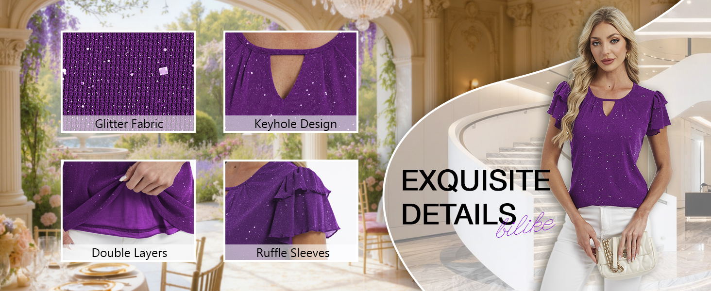 القمصان النسائية اللامعة مناسبة لحفلات الكوكتيل، والنوادي، وضيوف الزفاف، وحفلات العشاء، والرقصات، والمهرجانات، وحفلات الزفاف، والحفلات، والمواعيد وغيرها من المناسبات، مما يجعلها مناسبة لمختلف المناسبات