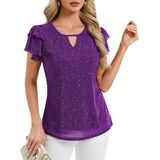 الرقبة المستديرة وفتحة المفتاح تزين الرقبة بشكل مثالي، وتظهر الانحناءات الساحرة بمهارة، مما يخلق مظهرًا أنيقًا وأنيقًا. أكمام قصيرة مكشكشة مزدوجة تجعلك أكثر رشاقة وأنوثة