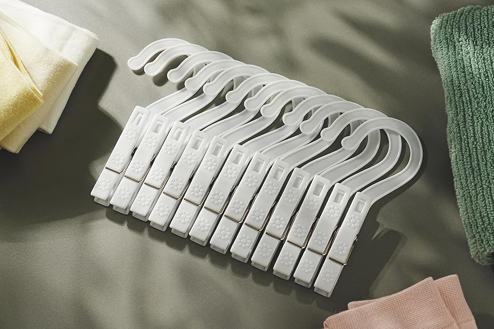 مجموعة خطافات غسيل جديدة من 12 قطعة، خطافات دبابيس الملابس، شماعات ملابس بلاستيكية، للحمام والسفر، قابلة للحمل، أبيض