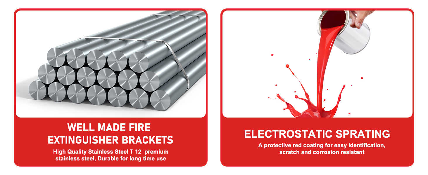 سهل التشغيل: تصميم حامل طفاية الحريق يسمح بالوصول السريع والسهل إلى طفاية الحريق. دبوس الأمان سريع التحرير يجعل من السهل عليك وضع طفاية الحريق وأخذها. يمكن لأقواس طفاية الحريق الخاصة بنا أن تقدم حلاً لاحتياجات السلامة الخاصة بك عندما يتعلق الأمر باستعدادات الطوارئ للحريق.