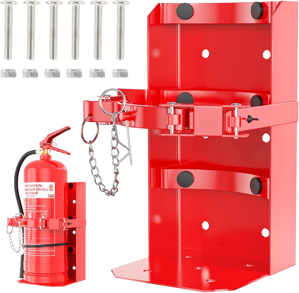 تركيب بسيط: يتميز حامل طفاية الحريق هذا بفتحات مثقوبة مسبقًا على كل من الإطار الخلفي وصينية القاعدة، مما يؤدي إلى تركيب طفاية الحريق الخاصة بك على الحائط أو أي سطح آخر دون عناء (يتضمن البراغي، مناسب فقط للتركيب على الأسطح المعدنية). مطلوب مسمار قابل للتعديل ولا يحتاج إلى قطع.