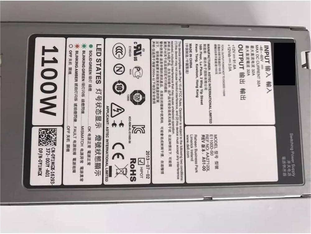 1pc 1100W Hot-Plug Power Supply For R530 R630 730XD R730 R720 R620 R520 T420 R820 R740 E1100D-S0 5G4WK Y1MGX 02RN7