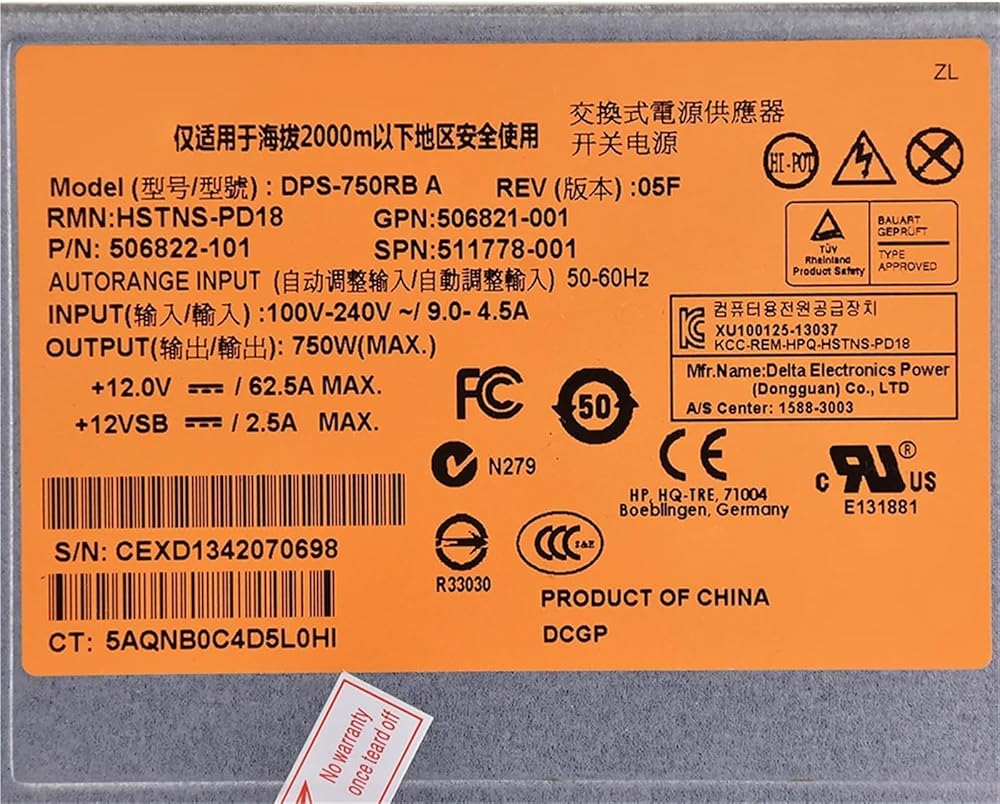 - Used 750W Server Power for DL380 G6 G7 HSTNS-PL18 511778-001 DPS-750RB A Power Supply PSU