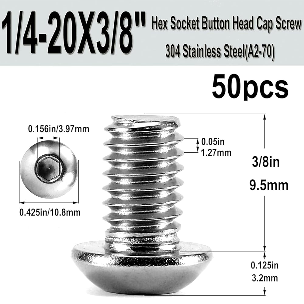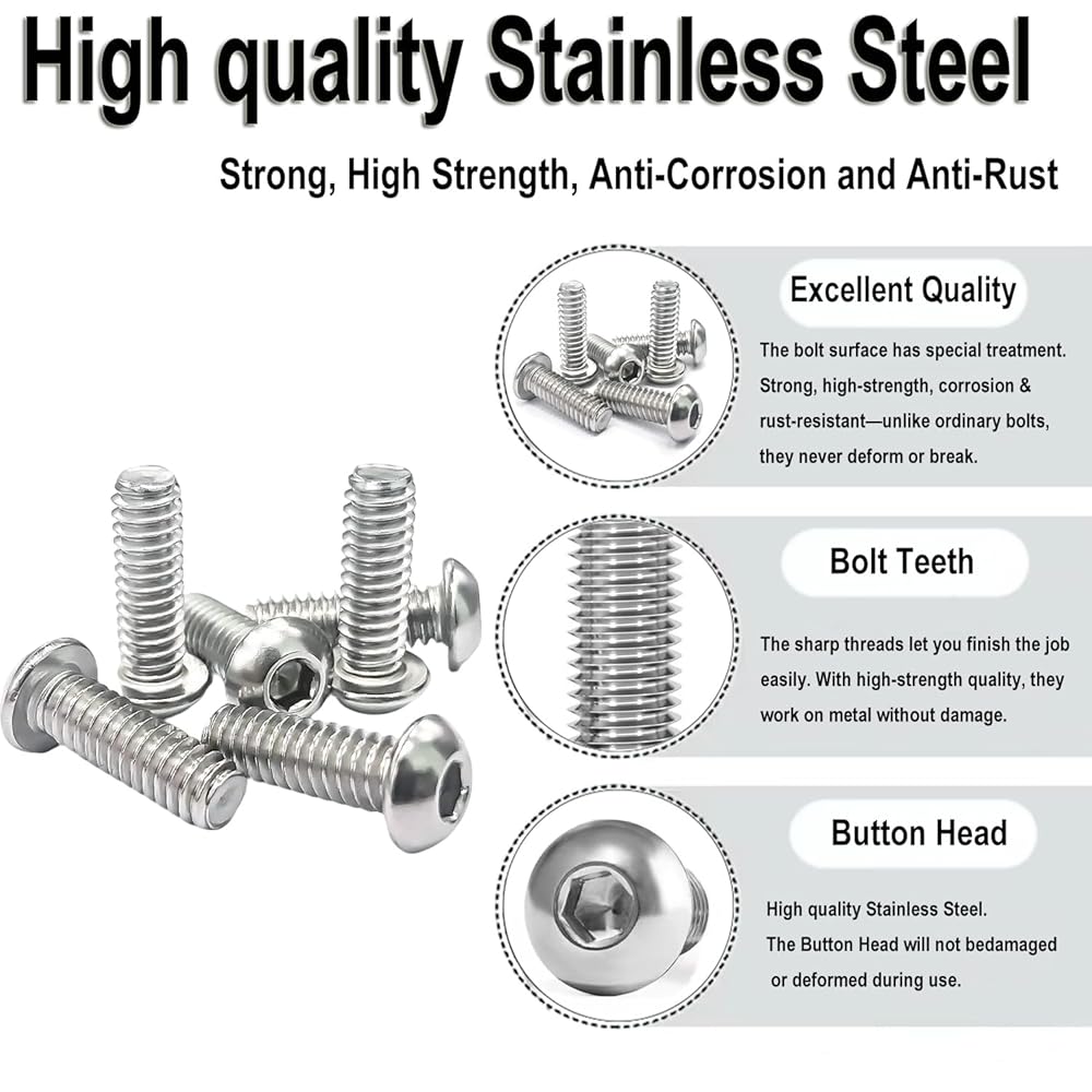 【High Quality Stainless】These 50 Piece hex button head socket cap bolts are 304 Stainless Steel which is one of the highest forms of corrosion resistant steel, making it last longer than other hardware on the market today. Deep cut, coarse threads for superior holding and prevent stripping in the material.304 Stainless steel with Passivation treatment to ensure life-time use, these quality assortment screws for home, automotive, boat and shop use.