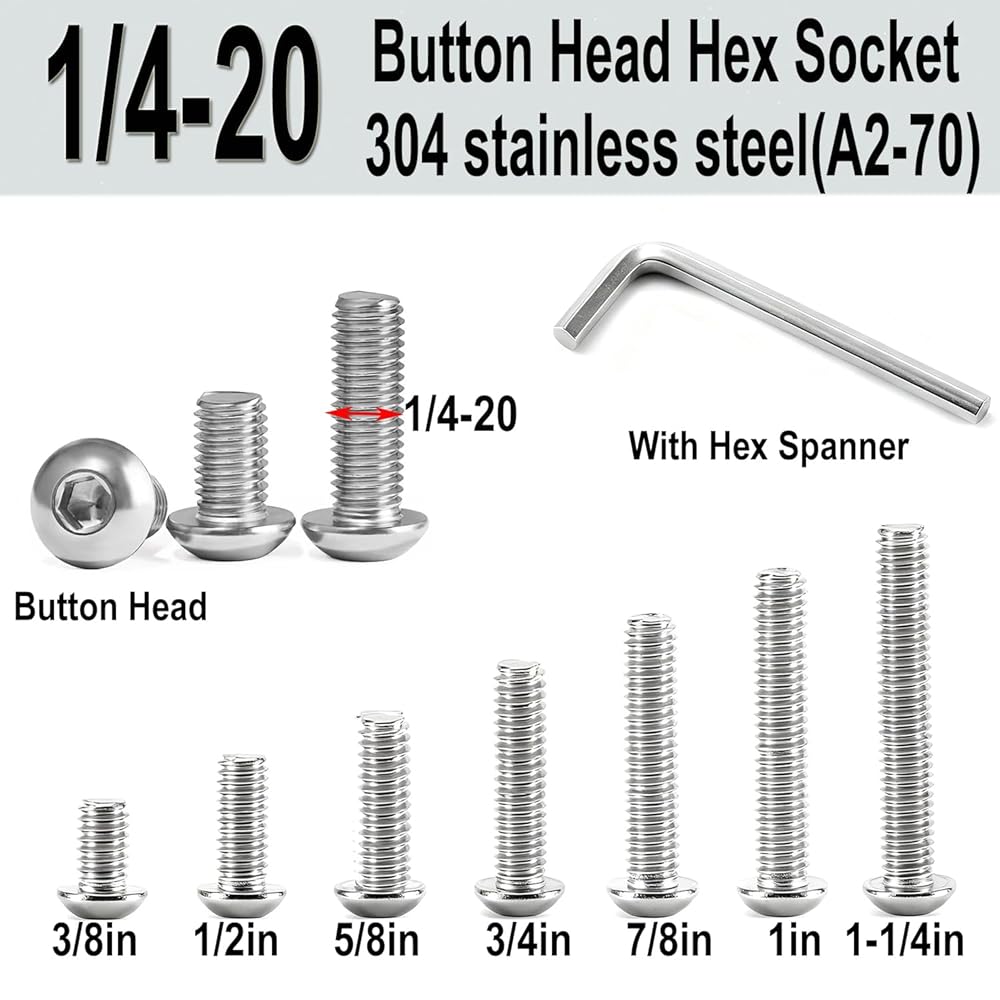 【Drive Type】Hex Socket; Head Style: Button Head; Exterior Finish: Bright Finish.Histure button head socket cap bolts screws are the highest quality available on the market and we stand by our claim 100%. They are strong, corrosion resistant and will support all of your projects.