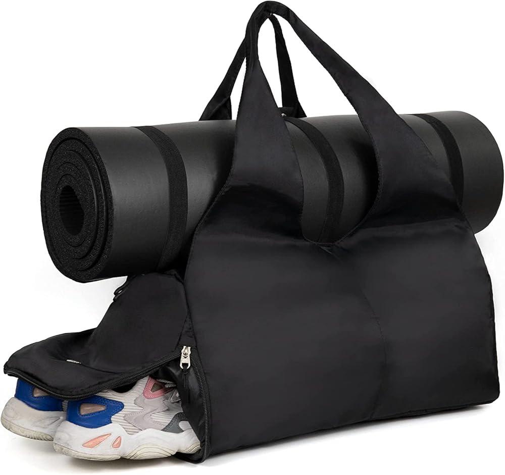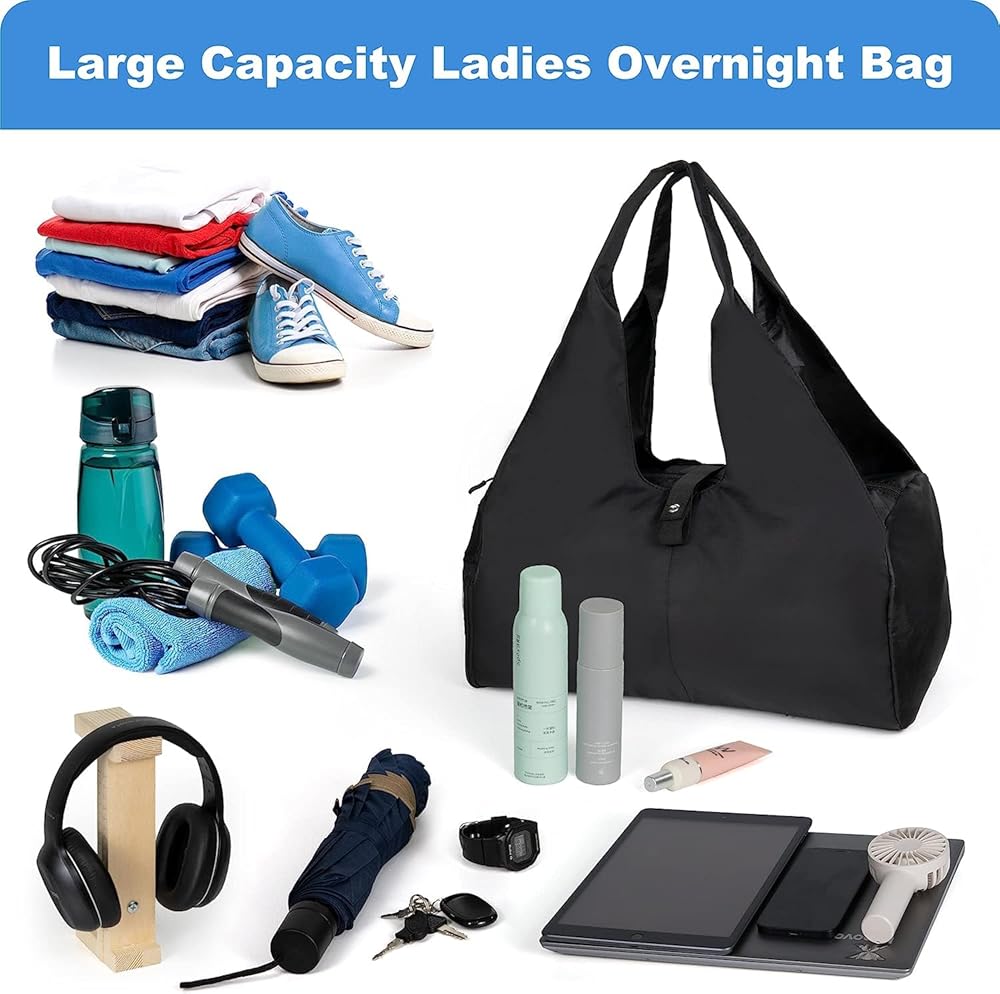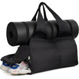 حقيبة رياضية للصالة الرياضية للنساء والرجال، حقيبة سفر ليلية لعطلة نهاية الأسبوع باللون الأسود للنساء تناسب كمبيوتر محمول مقاس 13.3 بوصة، حقيبة من القماش الخشن مقاومة للماء مع حجرة للأحذية وجيب مبلل للطائرة واليوجا والسباحة.