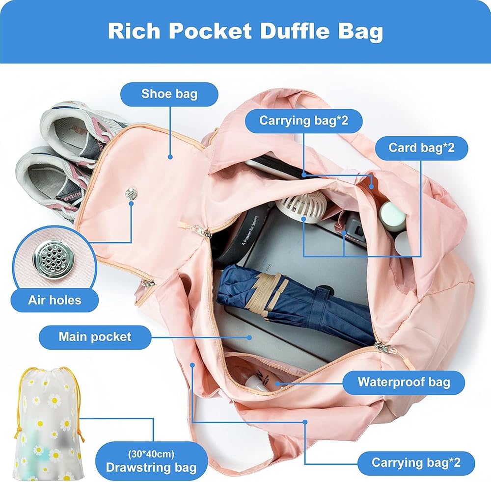 ☑️ حقيبة سفر بجيب غني للنساء: توجد 8 حجرات في حقيبة السفر، ملابس مبللة منفصلة، ملابس جافة، مقصورات الأحذية يمكن أن تميز بشكل فعال حذائك، ملابسك المبللة، مستحضرات التجميل، حقائب مستحضرات التجميل وغيرها من الأغراض الشخصية، مناسبة لحقائب الصالة الرياضية، حقائب القماش الخشن، والحقائب الرياضية، والحقائب الليلية، وحقائب اليوجا، وما إلى ذلك.