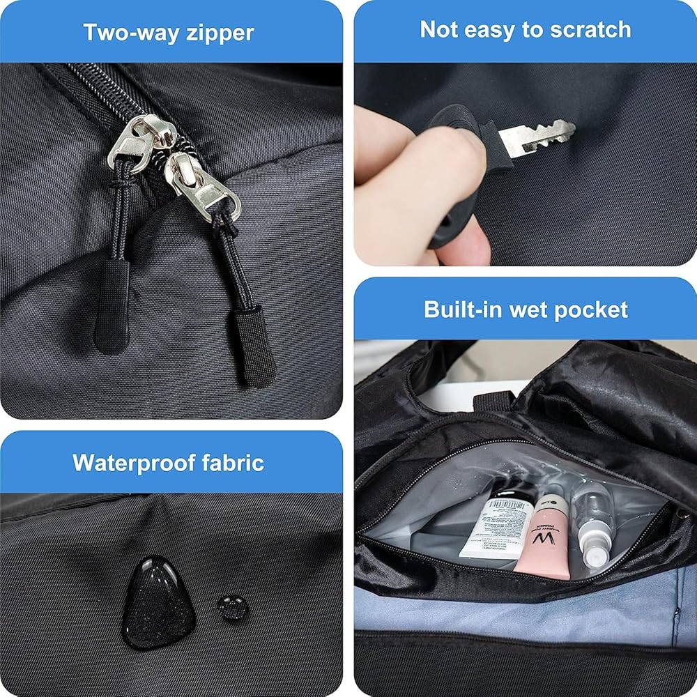 ☑️حقيبة أحذية مستقلة: توجد حقيبة أحذية مدمجة في الجزء السفلي من حقيبة اليد، مع فتحات تهوية، والتي يمكن أن تحافظ على حقيبة السفر طازجة وخالية من الروائح في أي وقت؛ لدينا حقيبة برباط كهدية، يمكنك وضع حذائك في حقيبة الرباط ثم وضعها في حقيبة الأحذية، لا داعي للقلق بشأن تلطيخ الحذاء لحقيبة السفر.