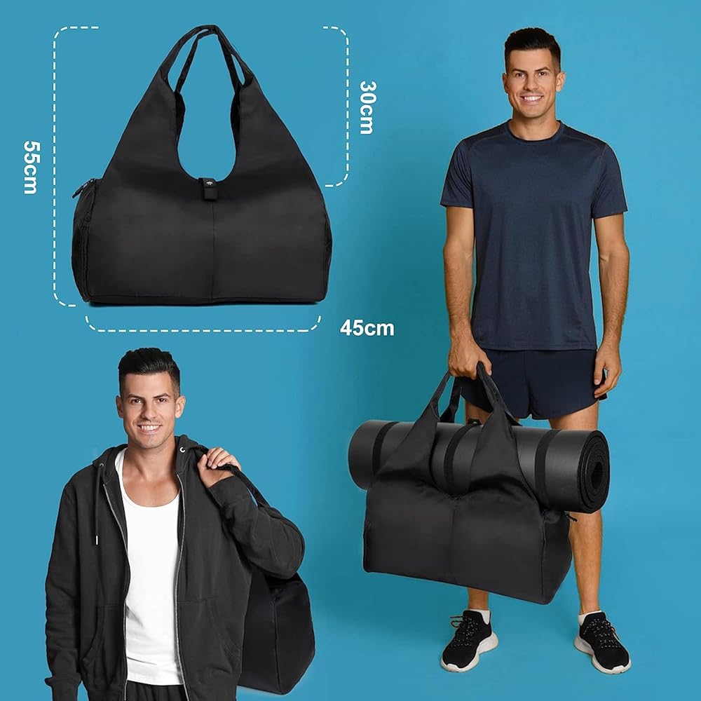 ☑️حقيبة الصالة الرياضية المنفصلة عن الرطب والجاف: تحتوي حقيبة الصالة الرياضية الرياضية على جيوب مدمجة مقاومة للماء للملابس المبللة والمناشف وملابس السباحة. يمكن لحزامي الكتف الموجودين في الأعلى تثبيت سجادة اليوغا، كما تم تصميم الجيوب الخارجية الأربعة لتخزين أكواب المياه والمظلات وغيرها من العناصر وإكسسوارات اللياقة البدنية. مثالي لمحترفي الرياضة واللياقة البدنية المتعرقين مثل اليوغا والسباحة والتنس وما إلى ذلك.