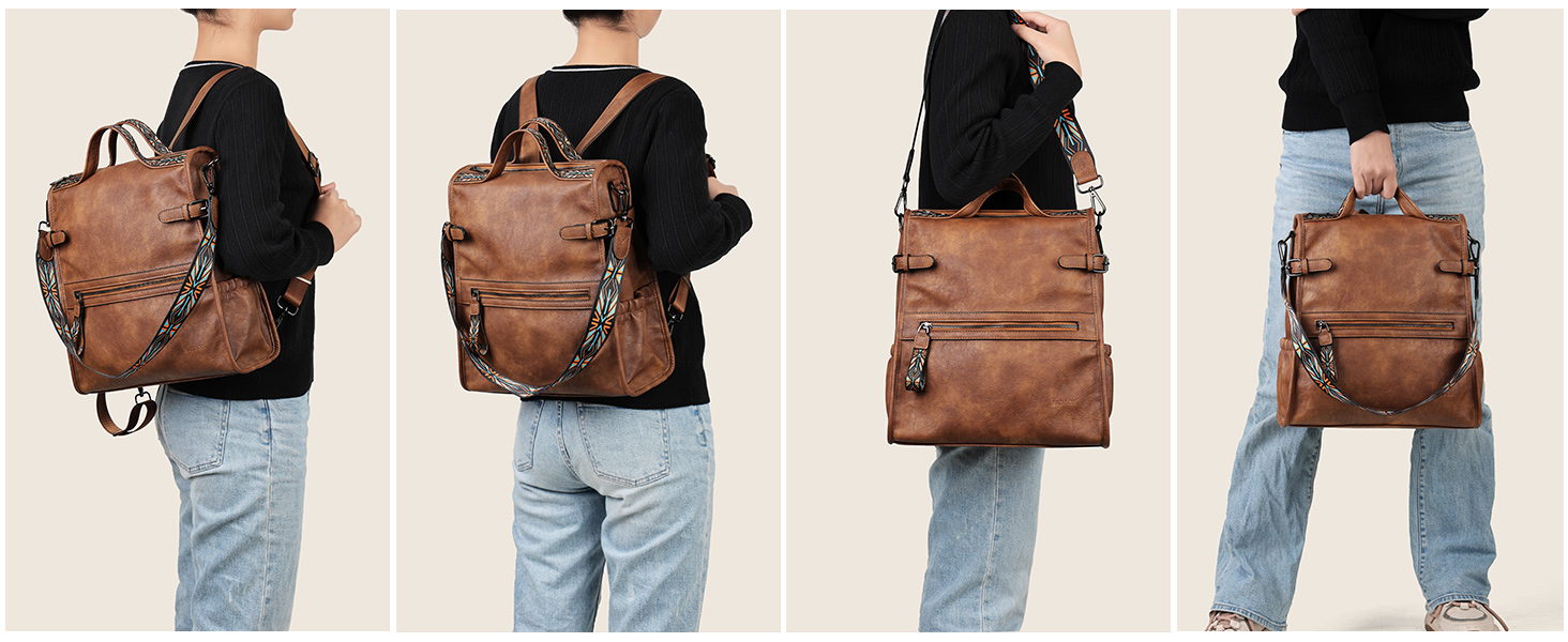 حقيبة ظهر مصممة: تستخدم حقيبة الظهر الأنيقة هذه تصميمًا مزدوج الفتح، ويوجد فتحة سحاب في الخلف والأعلى، وتصميم الزر القابل للتعديل يمكن أن يشد أو يريح سمك حقيبة الظهر، ويضبط سعة حقيبة الظهر وفقًا للاحتياجات، تم تصميم المقبض وحزام الكتف القابل للفصل لتحويل حقيبة الظهر إلى حقيبة كتف أو حقيبة يد لمجموعة متنوعة من المناسبات. لذا فهذه حقيبة ظهر نسائية أنيقة تتمتع بإحساس قوي بالتصميم.