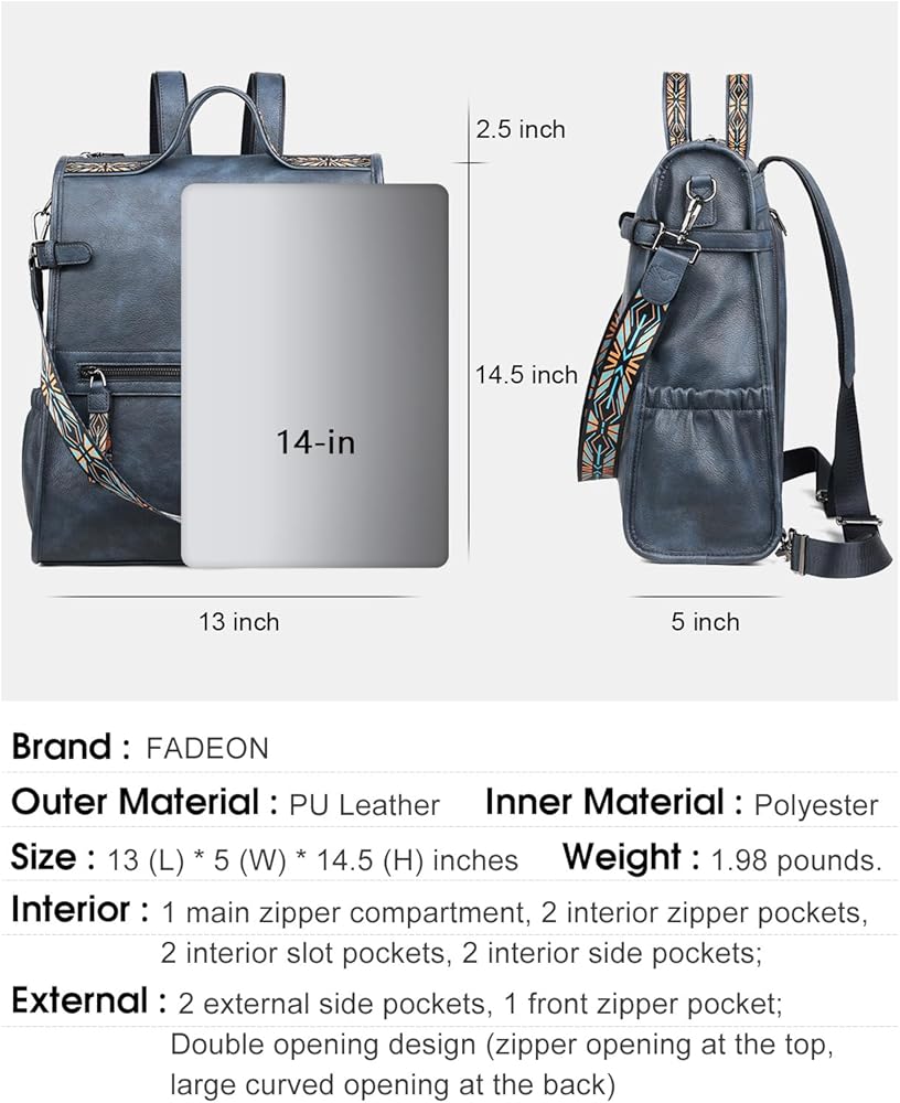 خدمة FADEON: يتم إنتاج جميع منتجات FADEON في مصنعنا الخاص، والجودة مضمونة. إذا واجهت أي مشاكل أو مشاكل، سيكون لدينا القدرة على إعطائك الحل الأفضل. لا تتردد في مراسلتنا عبر البريد الإلكتروني بشأن أي مشاكل متعلقة بالمنتج. لذلك نحن نصر على أن حقيبة الظهر الجلدية FADEON هذه هي خيار رائع لك أو هدية لحبيبك.