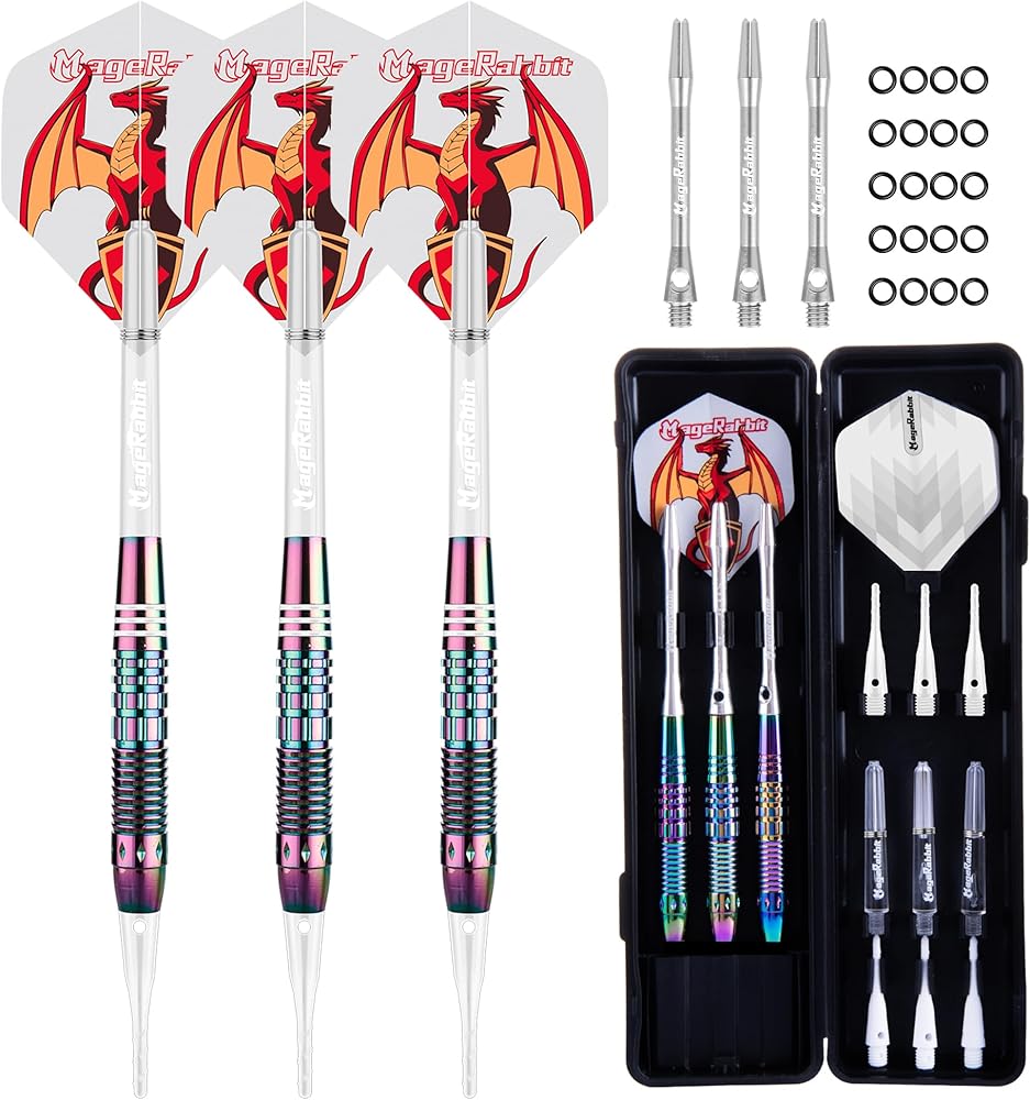 Premium Material & Well-Balanced: MageRabbit soft tip darts feature sturdy copper barrels and 18g weight, providing excellent balance and grip for smooth throwing, perfect for electronic dart boards.