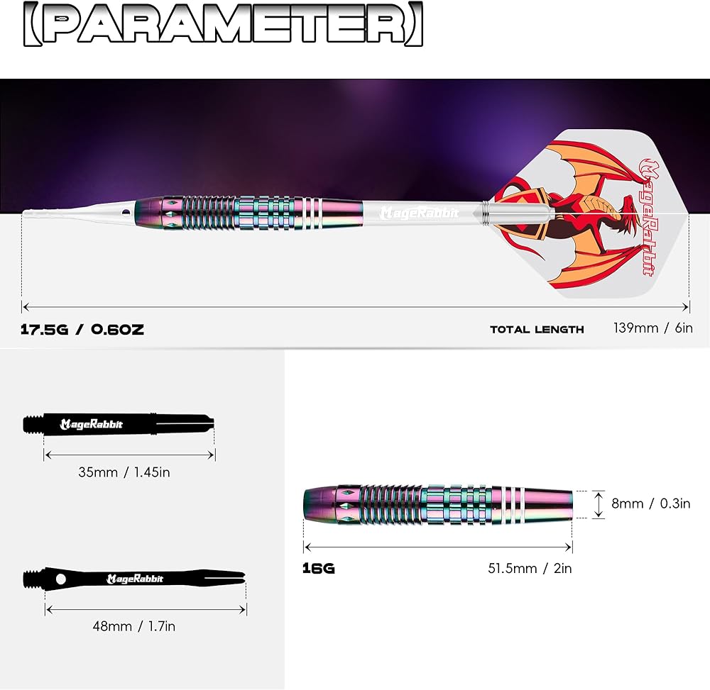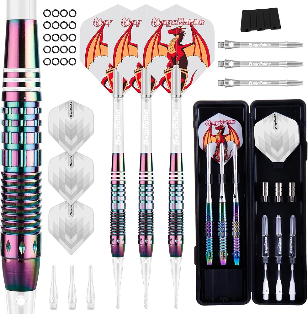 MageRabbit Soft Tip Darts 18g are designed for electronic dart board lovers and casual players. Made of high-quality copper barrels, these plastic tip darts deliver a well-balanced weight and comfortable grip to enhance your throwing accuracy and control. The safe and durable soft plastic tips are compatible with most electronic dartboards, making them perfect for home, bar, and game room use. This complete set comes with 3 darts, 6 replacement flights and 6 replacement shafts, so you have enough spare parts for long-term use. Whether you're practicing at home or enjoying a casual game with friends, MageRabbit soft tip darts bring you consistent performance and great fun.