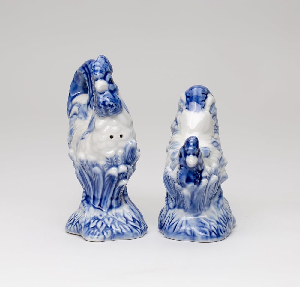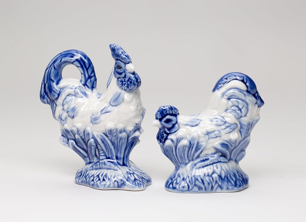 Fine Ceramic Dutch Blue Rooster Salt & Pepper Shakers Set, 4-3/8" H