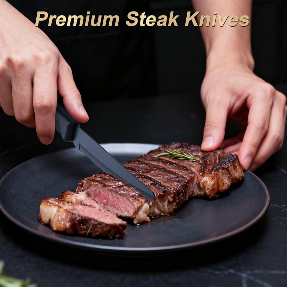 🔪【حدة ومتانة بدرجة احترافية】مصنوعة من الفولاذ المقاوم للصدأ عالي الجودة، تحافظ مجموعة السكاكين هذه على حواف حادة وتقاوم الصدأ والبقع والتآكل. مثالية للتقطيع والتقطيع والتقطيع بدقة لتدوم لسنوات من الاستخدام اليومي.