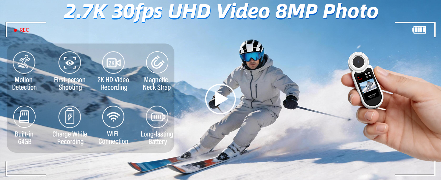 ✨【عدسة عالية الدقة 2.7K مع EIS】 تتميز بعدسة ذات زاوية واسعة للغاية 135 درجة وتثبيت الصورة الإلكتروني المتقدم (EIS)، فهي توفر فيديو عالي الدقة 2.7K سلس وخالي من الاهتزاز وصور ثابتة بدقة 12 ميجابكسل. سواء كنت تنحت المنحدرات ككاميرا التزلج الخاصة بك، أو تصور مدونات فيديو سريعة الحركة للسفر، أو تطارد الأطفال في الفناء الخلفي، تظل كل لحظة واضحة ومستقرة وغنية بالتفاصيل.