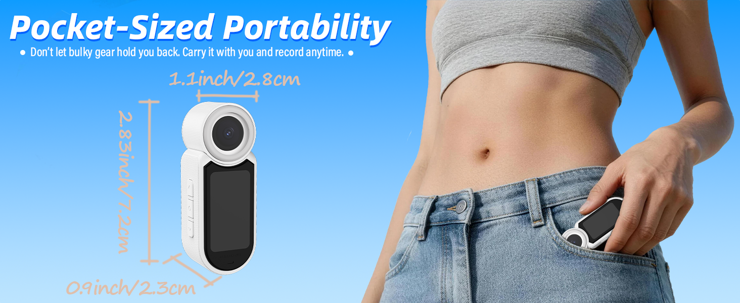 📸 【كاميرا حركة صغيرة مدمجة】تزن هذه الكاميرا الرياضية الصغيرة المحمولة 1.69 أونصة (48 جم) ويبلغ حجمها 2.83 × 0.9 × 1.1 بوصة، وقد تم تصميمها لتذهب إلى كل مكان تذهب إليه. توفر شاشته عالية الدقة مقاس 1.47 بوصة إطارًا مباشرًا واضحًا وتشغيلًا فوريًا، حتى تتمكن من البقاء في اللحظة أثناء التقاطها بشكل مثالي.