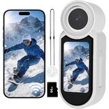 2.7K 64G Thumb Action Camera Mini Body Camera with Magnetic Lanyard for Hands-Free POV Vlogging Outdoor Sports Recording Video Camera for Cycling, Traveling, Running (White)