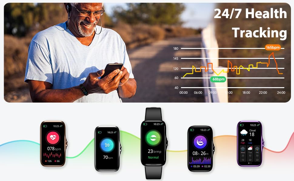 Fitness Tracker with 24/7 Continuous Heart Rate, Blood Oxy-gen Monitor, Smart Watch with Sleep Monitor, IP68 Waterproof Activity Tracker Step Counter for Women Men