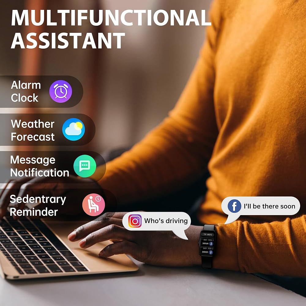 الميزات اليومية الذكية: ابق على اتصال من خلال تنبيهات المكالمات والرسائل وتحديثات الطقس والتحكم في الموسيقى وتمارين التنفس والمزيد. يتضمن تتبع صحة الإناث، وأجهزة الإنذار، والتحكم في الغالق، والعثور على الهاتف، وساعة التوقف، وتذكيرات الجلوس - مساعد الحياة الشامل الخاص بك.