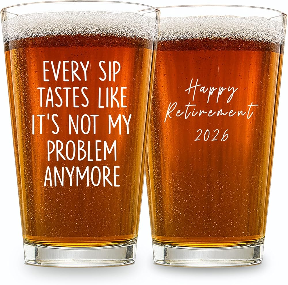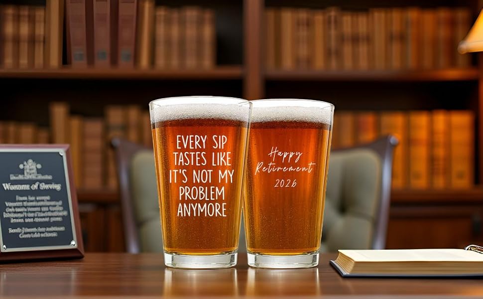 زجاج بيرة عالي الجودة للاستخدام اليومي: مصنوع من زجاج متين وشفاف، هذا نصف لتر بوزن 16oz رائع للبيرة والكوكتيل والشاي المثلج والمزيد. هدية تقاعد مدروسة وعملية للرجال