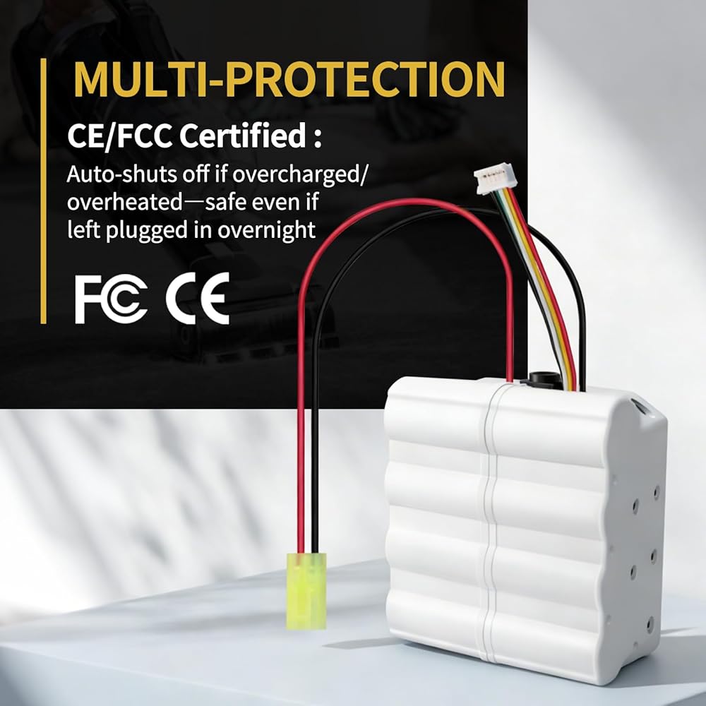 The battery uses a high-quality lithium-ion battery, offering excellent durability and safety. It features built-in overcharge protection, over-discharge protection, overcurrent protection, and short-circuit protection to prevent damage to your vacuum cleaner and ensure safe use.