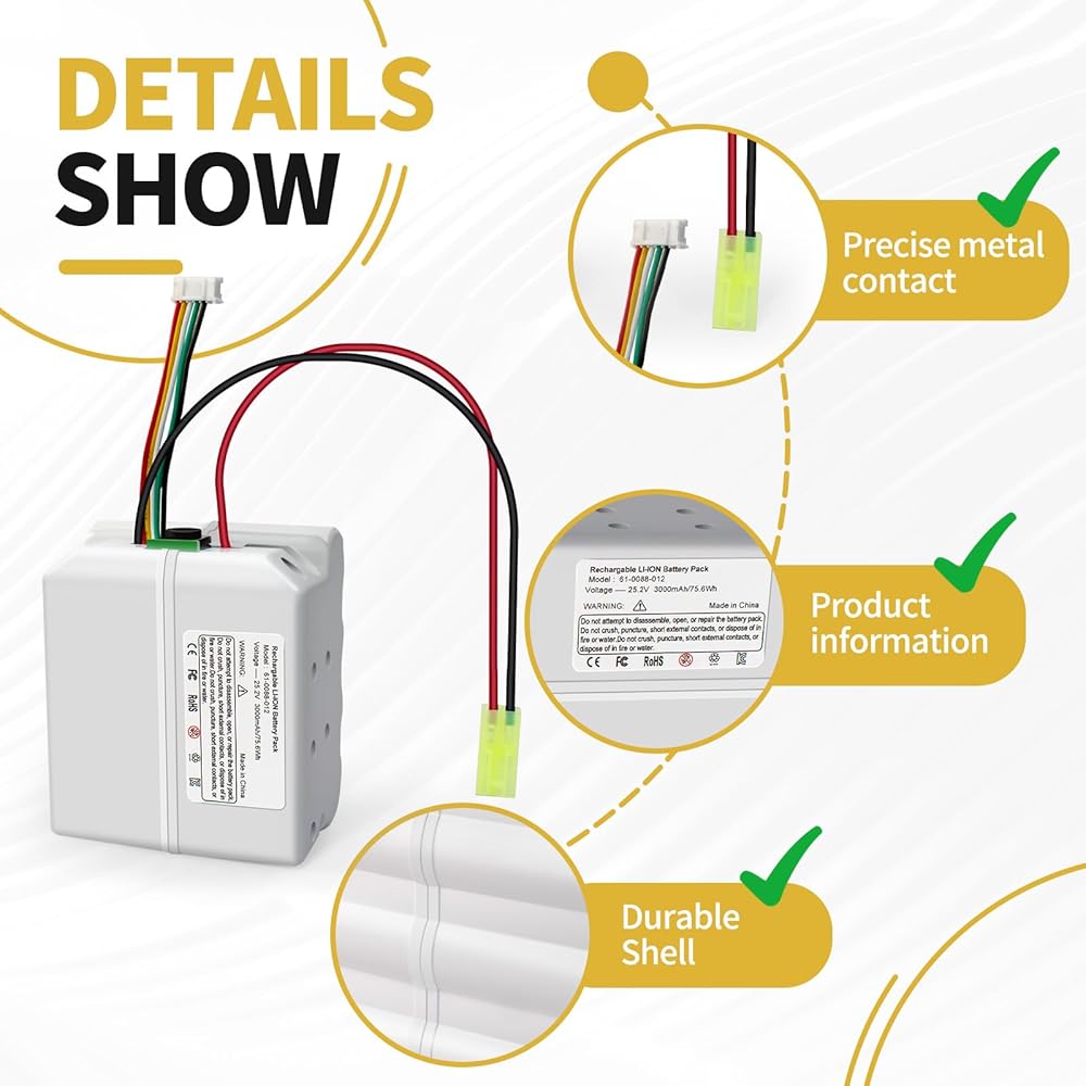 3000mAh 25.2V meets your daily cleaning needs. It extends the vacuum cleaner's battery life, allowing you to clean your entire house in one go without frequent charging.