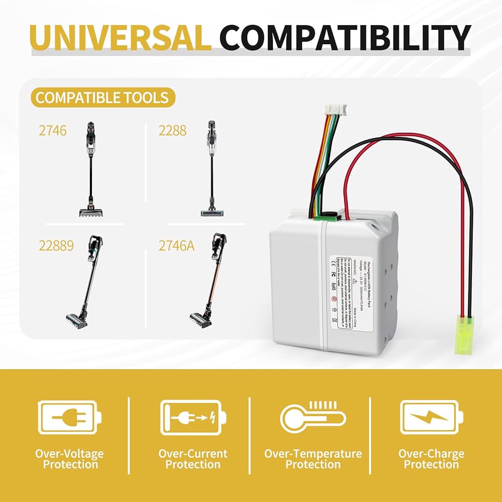 battery is specifically designed for Bissell ICONpet Pro 25.2V vacuum cleaners, including popular models 2746, 2746A, 22889, and 2288 (and other compatible 25.2V models)