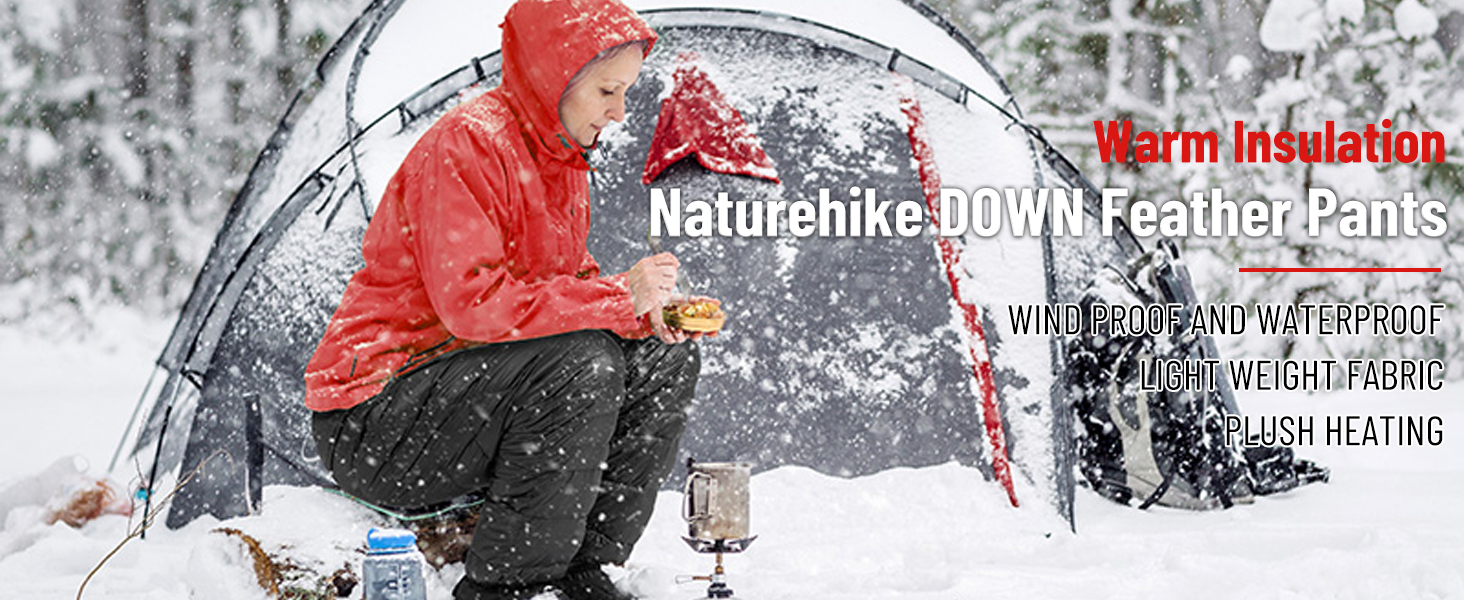 【مقاوم للرياح والبرد】مصنوع من نسيج نايلون 20D مقاوم للرياح والماء، سراويل Naturehike السفلية للرجال والنساء معزولة بنسبة 90% من ريش البط عالي النعومة، مما يوفر دفء خفيف الوزن ومقاومة ممتازة للبرد. مثالية لدرجات الحرارة التي تتراوح بين -4 درجة فهرنهايت و32 درجة فهرنهايت (-20 درجة مئوية إلى 0 درجة مئوية)، فهي توفر أداءً حراريًا فائقًا.