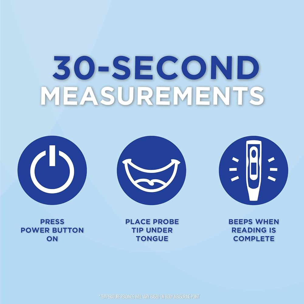 COMPLETE TEMPERATURE MONITORING — all of the features you look for in a traditional stick thermometer: clinical accuracy, Fahrenheit/Celsius switchable measurements, last-reading memory recall, fever alert notification, automatic shut-off plus replaceable LR41 battery included. One-year limited warranty.