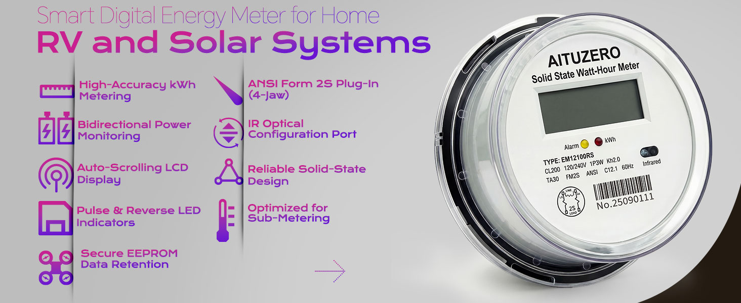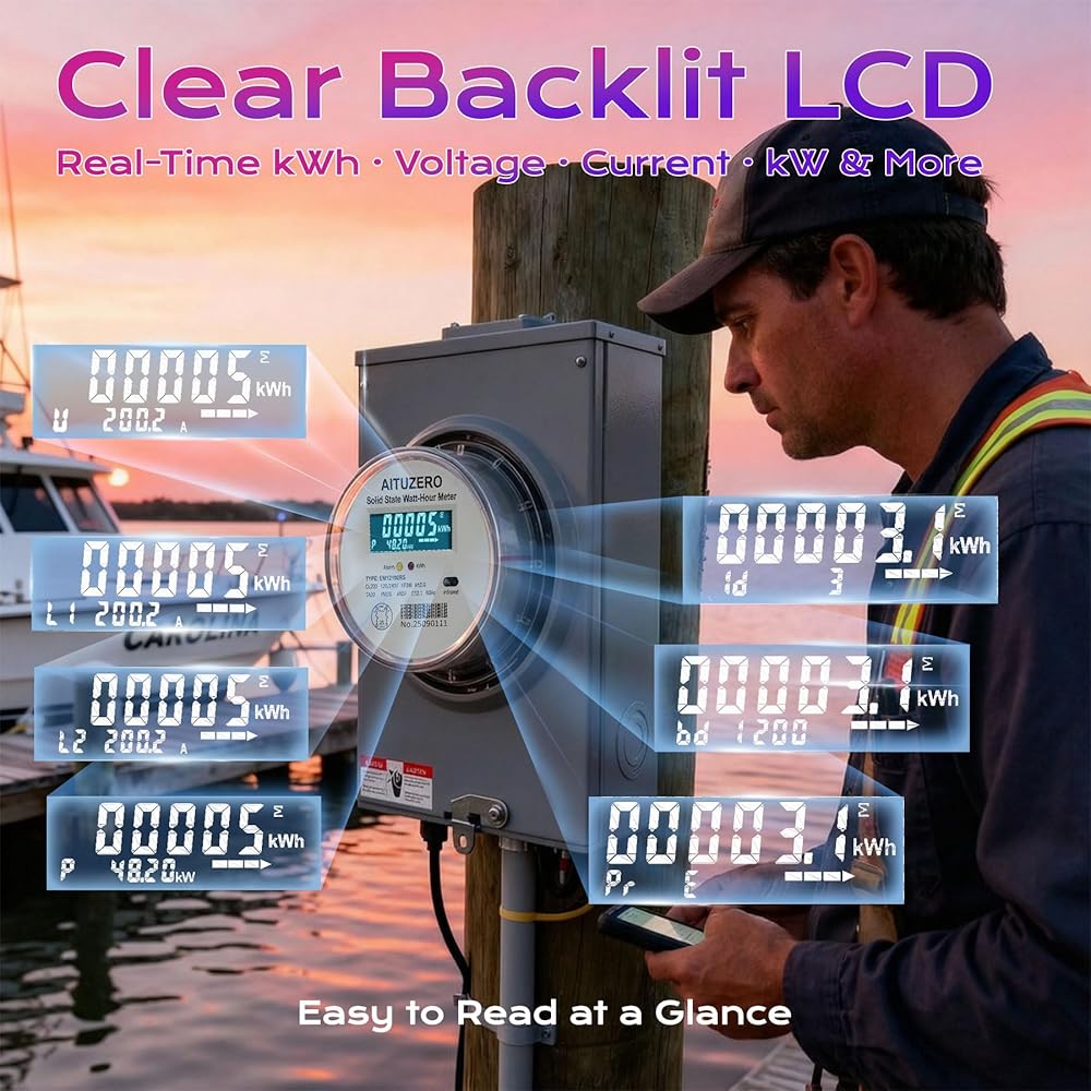 • الاستخدام متعدد السيناريوهات: يتكيف هذا العداد مع حدائق المركبات الترفيهية والمنازل المتنقلة والكبائن والجراجات والمباني النائية والمساحات الصناعية الخفيفة. يناسب التكوين أحادي الطور 120/240 فولت الأنظمة الكهربائية القياسية ويتم تثبيته بسهولة في صندوق عداد أو لوحة قاطعة أو مقبس خارجي. إنه يقيس الطاقة بشكل موثوق لأجهزة اللحام والضواغط ووحدات التدفئة والتهوية وتكييف الهواء وأجهزة الشحن والأحمال الثقيلة الأخرى. إن شاشة LCD الساطعة والتتبع الدقيق للكيلوواط ساعة تجعلها حل مراقبة متعدد الوظائف لأي بيئة تقريبًا تحتاج إلى رؤية موثوقة لاستخدام الكهرباء. ويتحمل تصميم الحالة الصلبة الظروف البيئية القاسية، ويتيح منفذ الأشعة تحت الحمراء للفنيين التحقق من إعدادات جهاز القياس أو ضبطها دون فتح اللوحة.