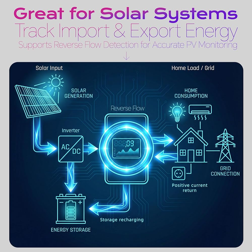• مراقبة الطاقة الشمسية: يعد عداد الطاقة الرقمي هذا أداة قوية لمستخدمي الطاقة الشمسية الذين يحتاجون إلى مراقبة دقيقة للاستيراد/التصدير للكيلووات في الساعة. يتم تثبيته بين العاكس والمنزل أو بين الشاحن والبطارية، ويكشف عن تدفق الطاقة في الوقت الحقيقي، وسحب الكهرباء، والاستهلاك الإجمالي للنظام. تعرض شاشة LCD الساطعة اتجاهات إنتاج الطاقة الشمسية بوضوح، مما يساعد المستخدمين على تقييم أداء اللوحة وموازنة الأحمال وحجم ترقيات القوة الكهربائية المستقبلية. مثالي للأنظمة الهجينة خارج الشبكة، والكبائن، وتحويلات المركبات الترفيهية، وتكوينات الطاقة الاحتياطية حيث تكون الرؤية الدقيقة للطاقة أمرًا ضروريًا. يوفر مصباح LED ذو التدفق العكسي اكتشافًا سريعًا لمشاكل التغذية العكسية أو القطبية الشمسية، مما يساعد المستخدمين على التحقق من سلوك العاكس وسلامة النظام.